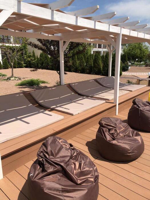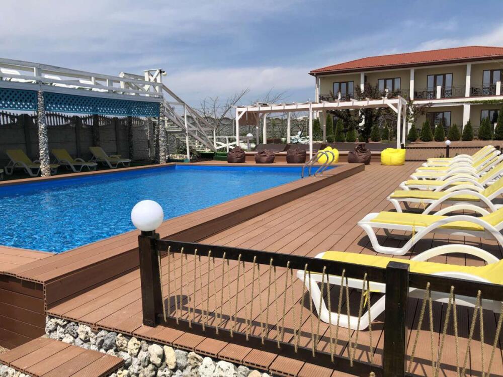 У нас Вы можете отдохнуть от городской и шумной суеты, выпить на закате бокал глинтвейна, сидя в кресле на балконе своего номера и наблюдать как солнце прячется за море. Нашей отличительной чертой является расположение в самом экологическом и красивом месте поселка Межводное.