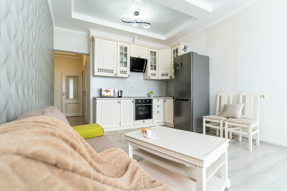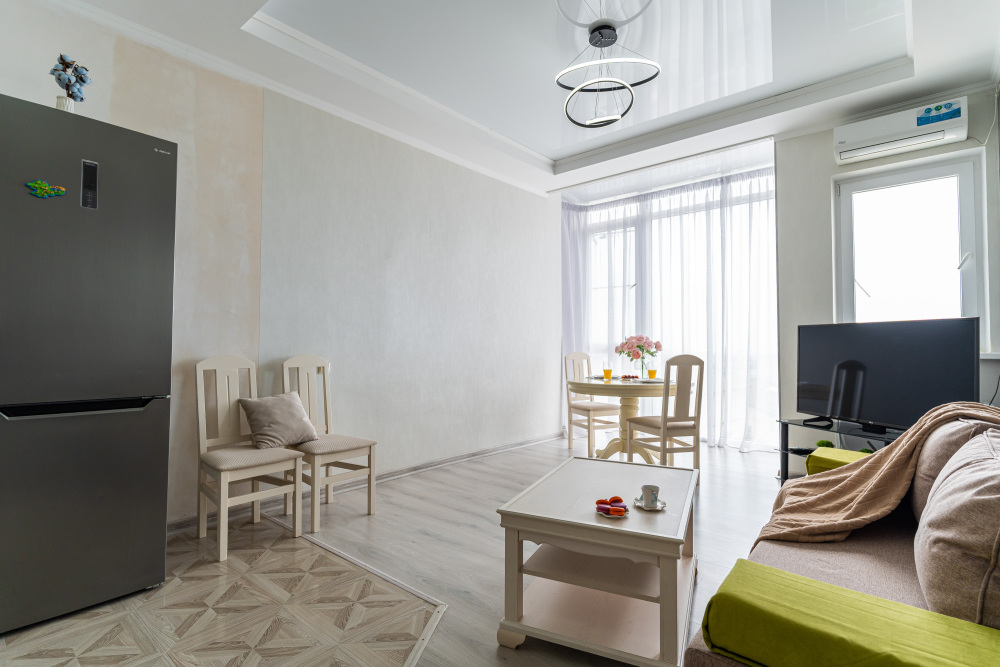 - Свежий ремонт, светлые тона, стильная мебель и продуманное зонирование.