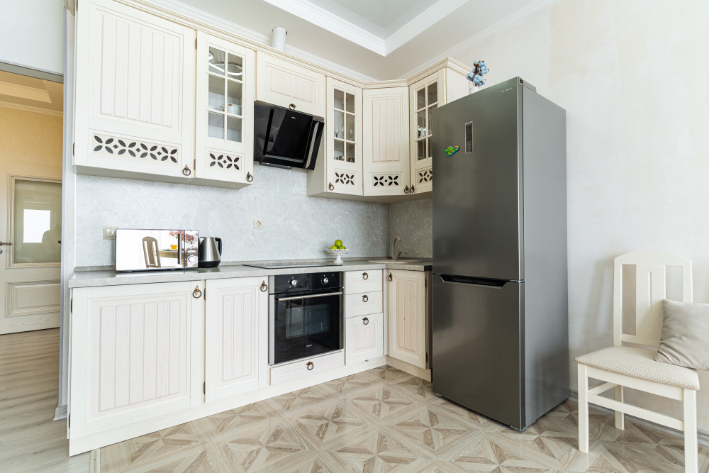 - SMART-TV, Wi-Fi, сплит-система, микроволновка, электрическая плита, духовой шкаф, холодильник, стиральная машина, утюг, пылесос.