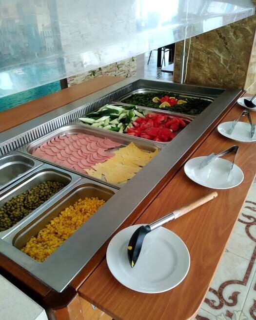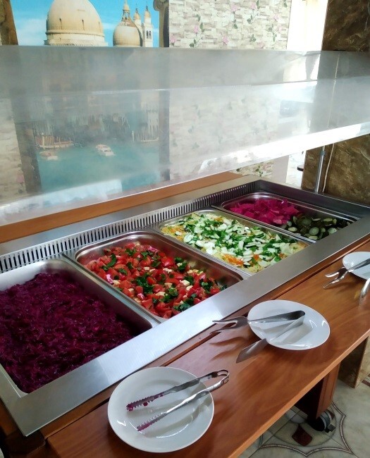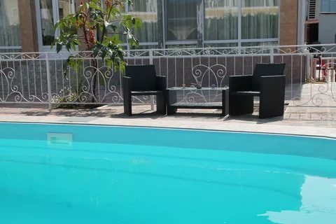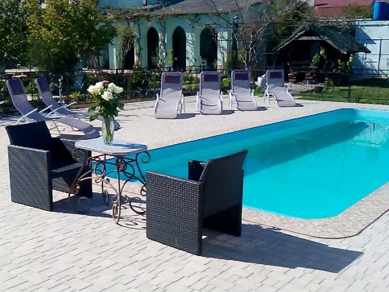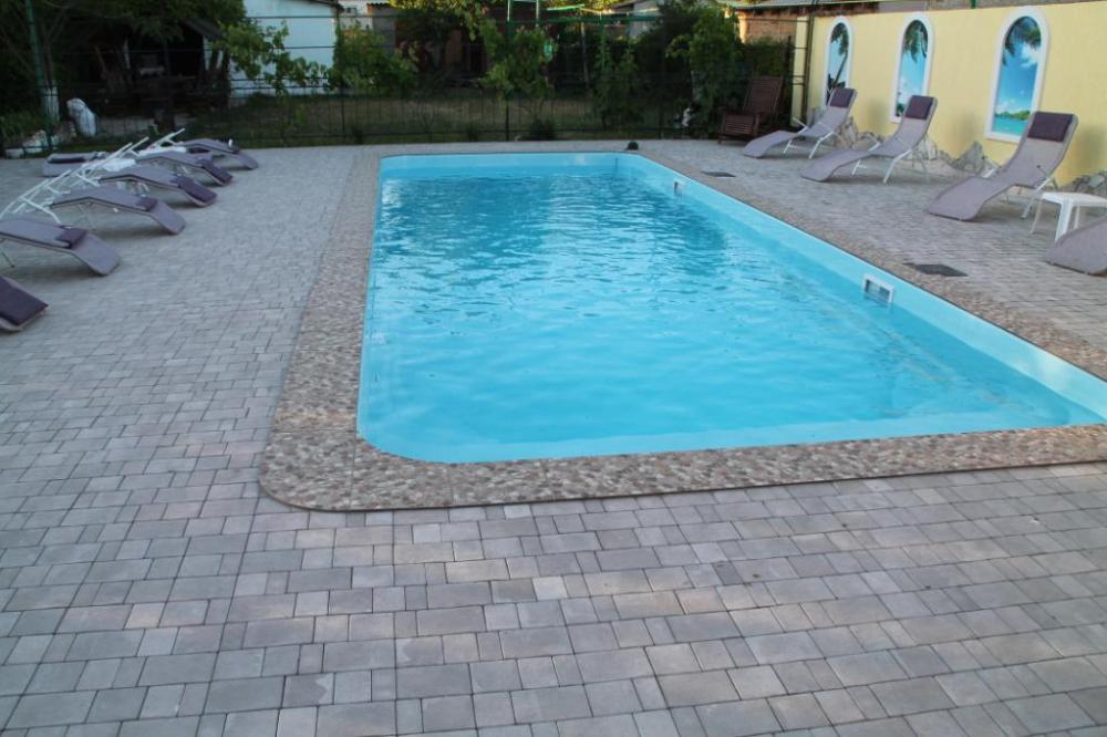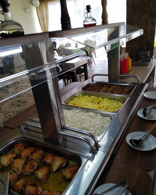 Гостиничный комплекс предлагает заказное питание: вкусные завтраки и обеды в собственной столовой на территории. Для приготовления ужинов имеется общая оборудованная кухня. Также во дворе к Вашим услугам бесплатная автостоянка, игровая площадка для детей с песочницей и качелями, также детский бассейн, а для взрослых - беседки с мангалами.