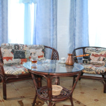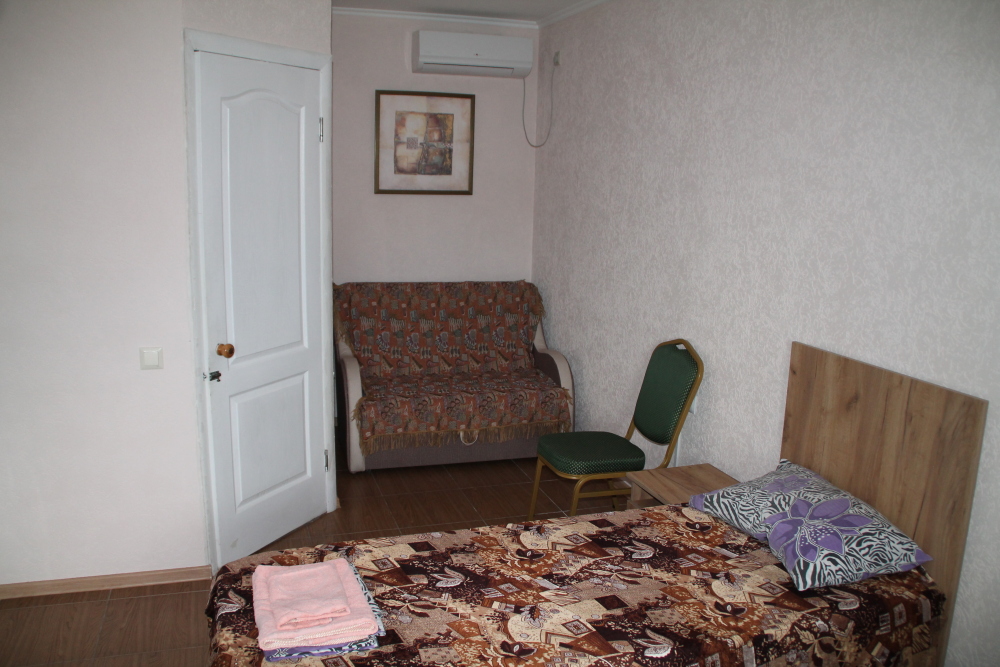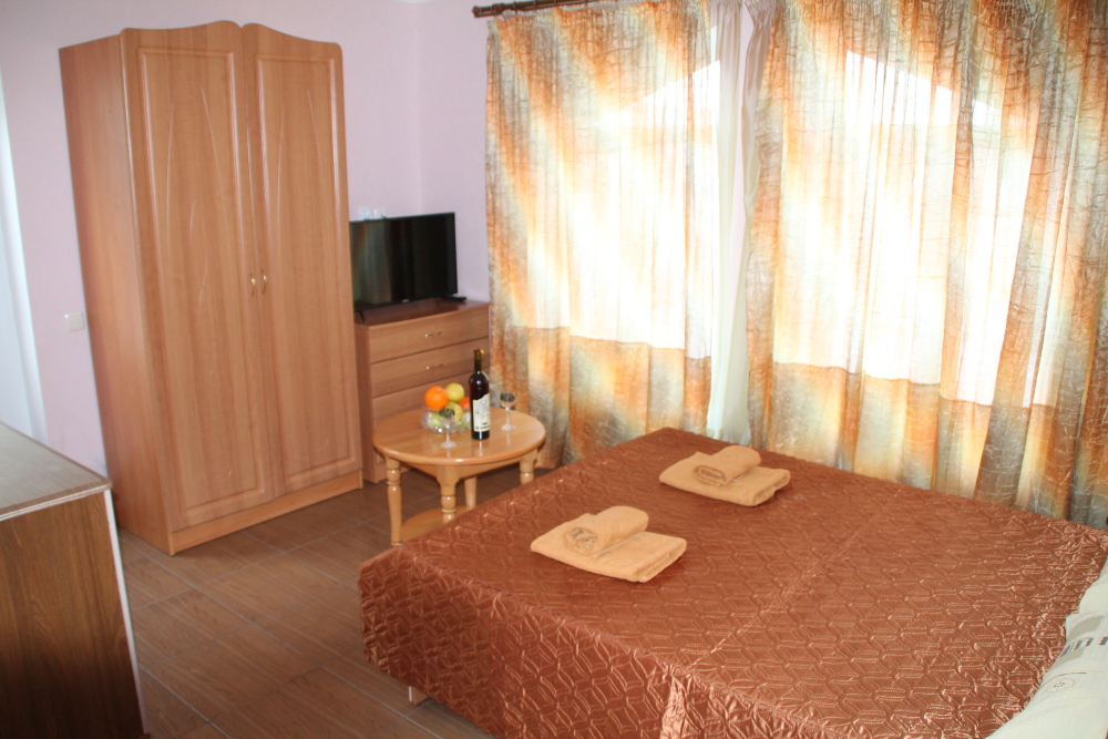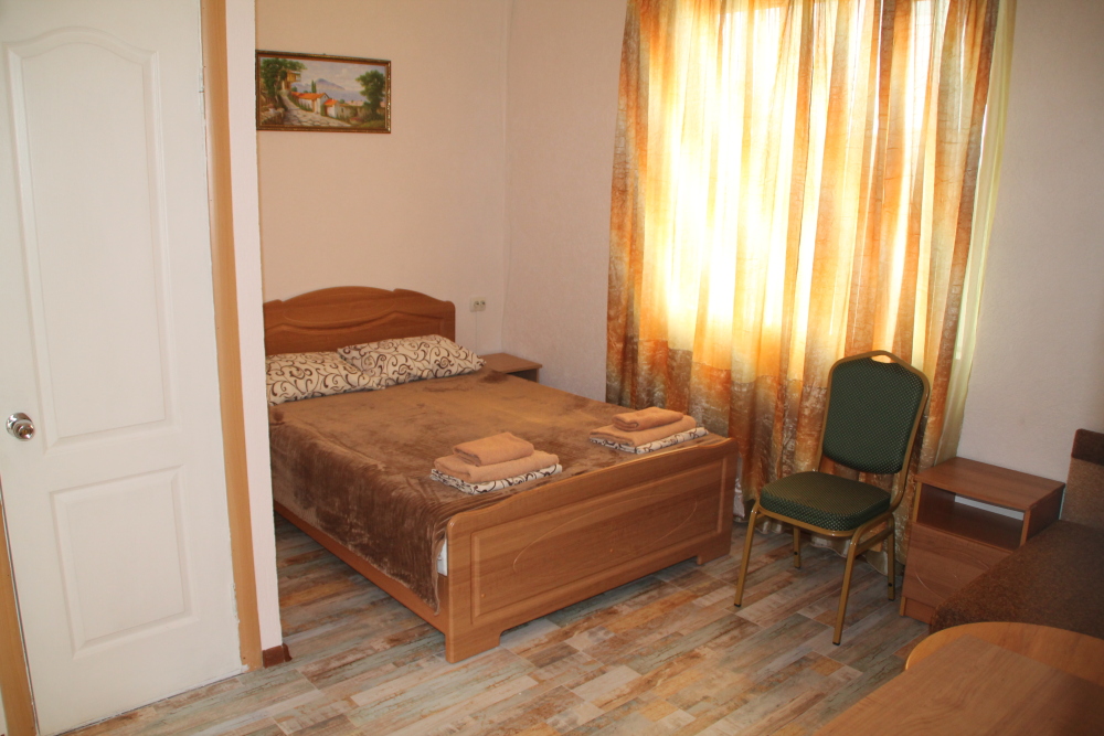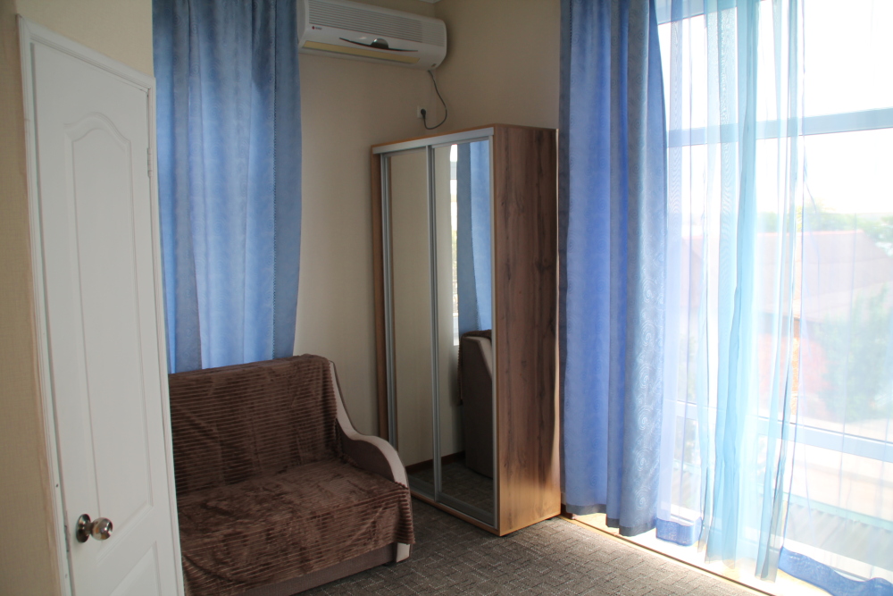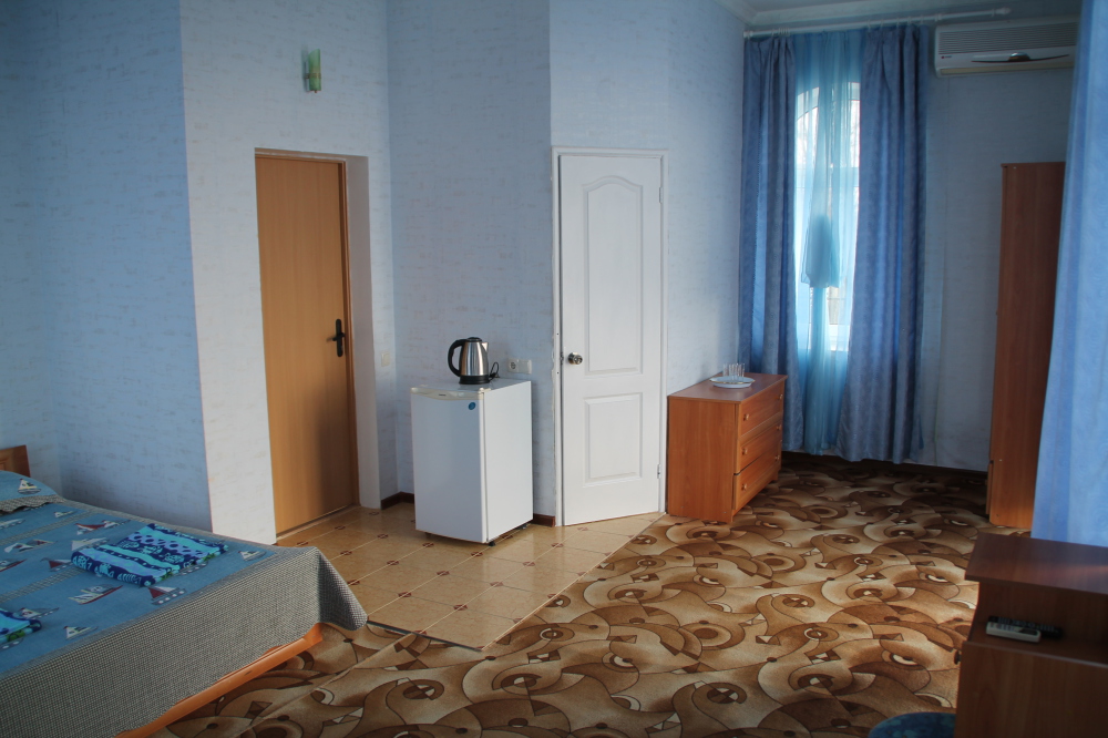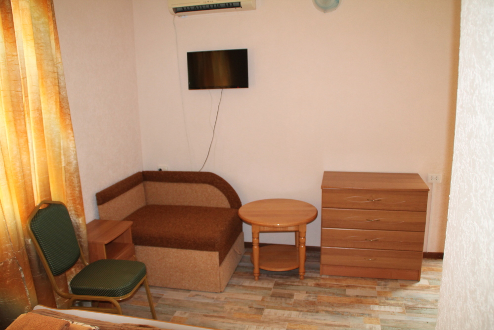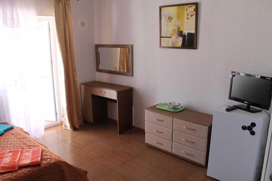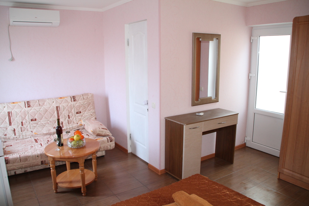 Номер в 2-этажном корпусе «Карина». Однокомнатный 30 м2 + балкон с видом на море . Рассчитан на 2 гостей. Допускается 1-2 доп. места. В Номере двухспальная 160х200 кровать, раскладной диван 160х200 или односпальная кровать 90х200. Шкаф, тумбочки, комод, трюмо, столик, кресла,стулья, ТВ,