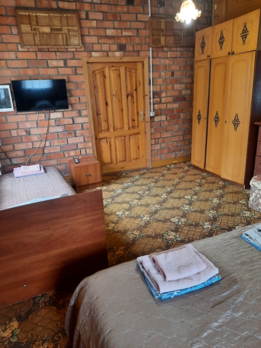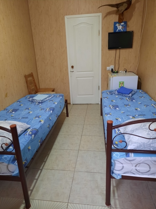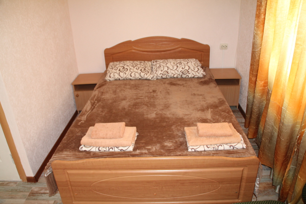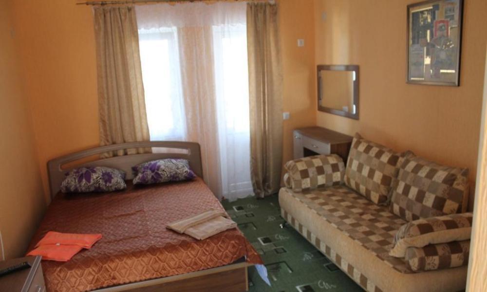 Номер в 2-этажном корпусе «Карина». Однокомнатный 20 м2 + небольшой балкон 1.5х 2.0. Рассчитан на 2 гостей. Допускается 1 доп. место. В номере двухспальная 140х200 или два спринг-бокса 90х200, раскладной диван 120х190. Шкаф, тумбочки, комод, стулья, ТВ, холодильник,