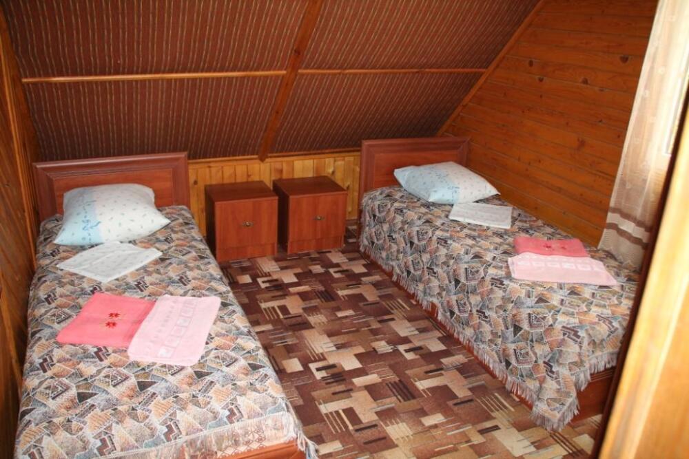 Комплекс представляет собой частную ограждённую территорию, на которой расположен жилой двухэтажный корпус с 10 уютными и комфортными номерами. Также для размещения отдыхающих предоставляются 11 отдельных домиков и два больших коттеджа, стилизованных в охотничьем стиле - они отлично подойдут для проживания большой компании, там Вас никто не побеспокоит.