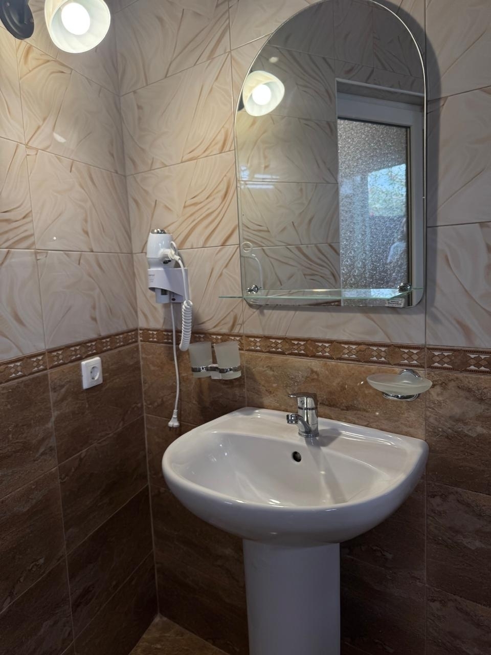 До всей необходимой инфраструктуры можно добраться пешком за 10-20 минут. Дом расположен в пос. Алахадзы, в 2,8 км от моря.
