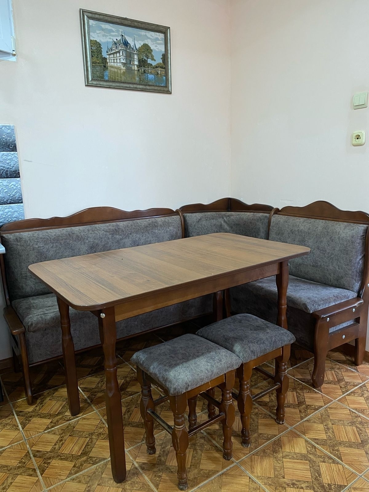 Сдается 2-этажный дом под-ключ, рассчитанный на проживание 5 человек в 2-х комнатах. В доме есть все необходимое для комфортного времяпровождения: односпальные и двуспальная кровати, диван, шкаф, прикроватные тумбочки, журнальный столик, стол, вешалка, зеркало, кухонный гарнитур, обеденная зона, эл. чайник, посуда, стиральная машина, гладильная доска и утюг.