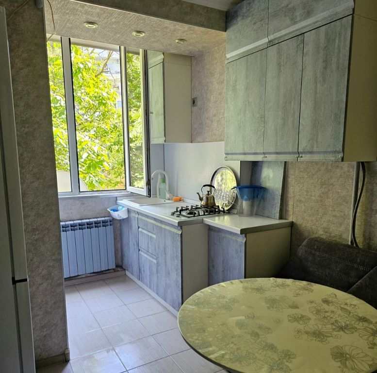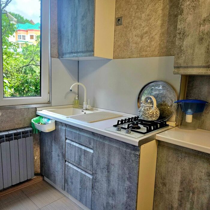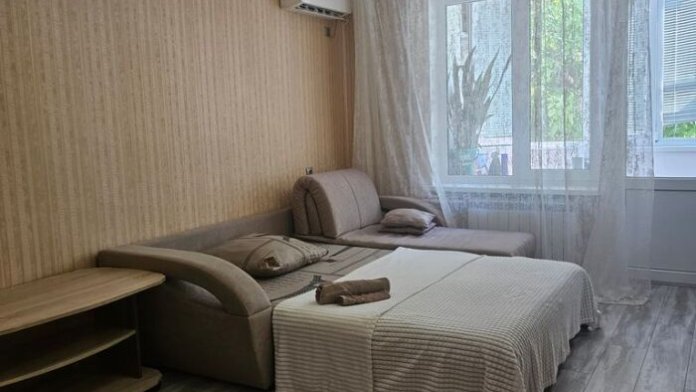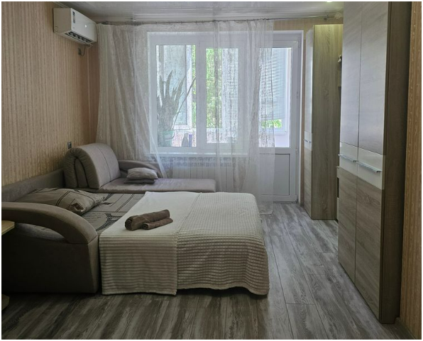 В квартире есть все необходимое. Угловой двуспальный диван (ортопедическое основание), плюс диван аккордеон 140×200 (ортопедические основание), на кухне угловой диван раскладывается на одно спальное место. Wi-fi, смарт ТВ, холодильник, духовка, микроволновка, стиральная машина, утюг, фен, сплит система, дополнительно имеется бак с водой. Лоджия. В квартире светло и чисто. Дом кирпичный.