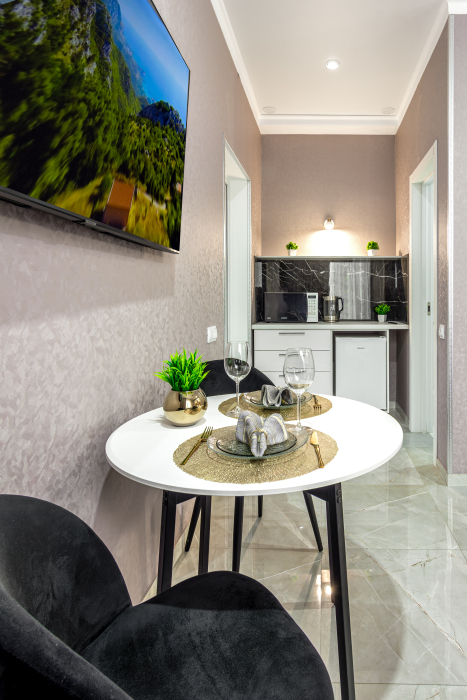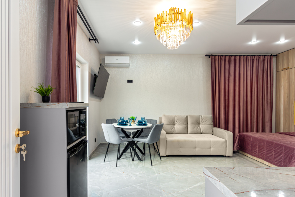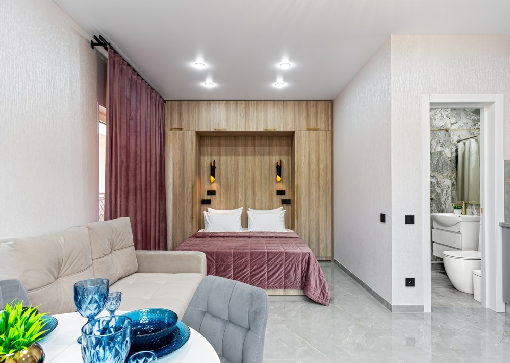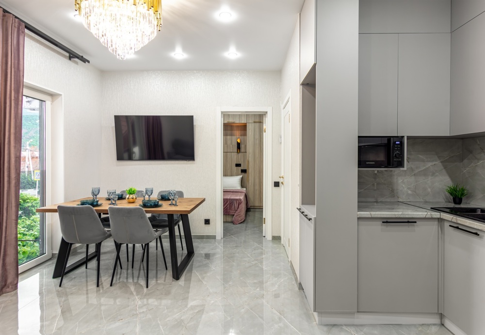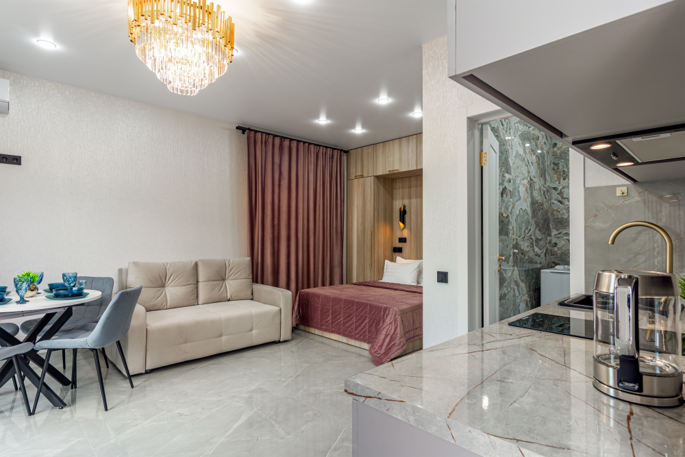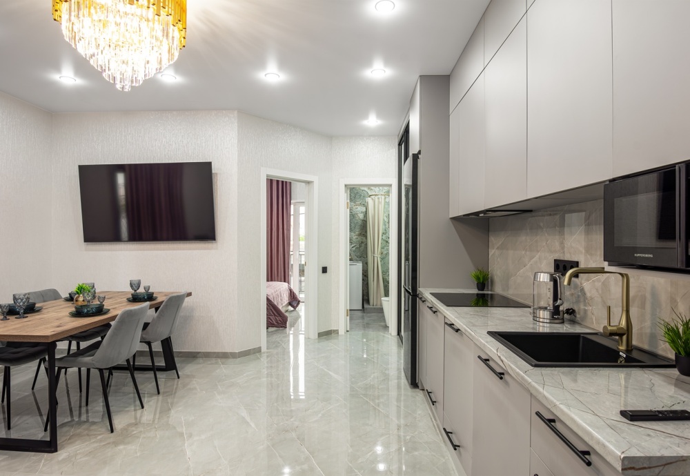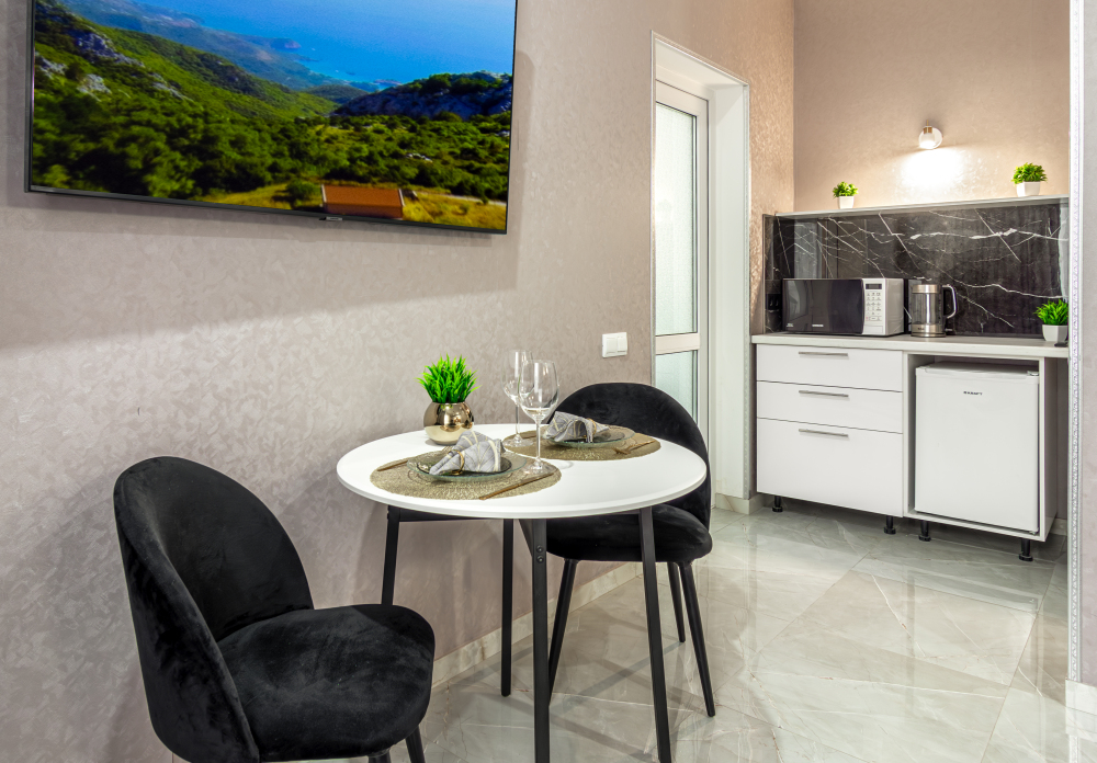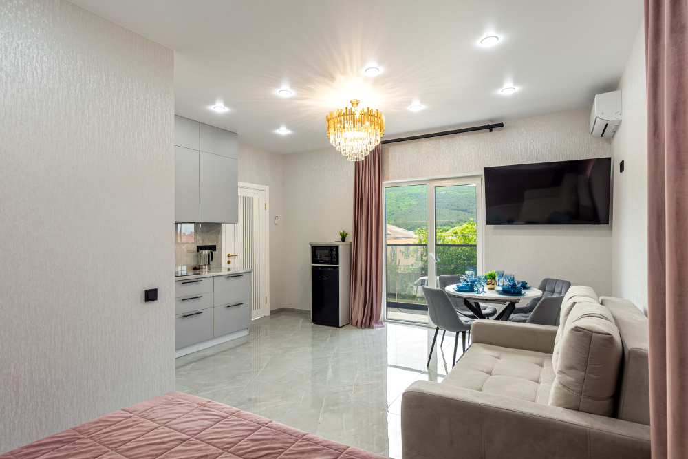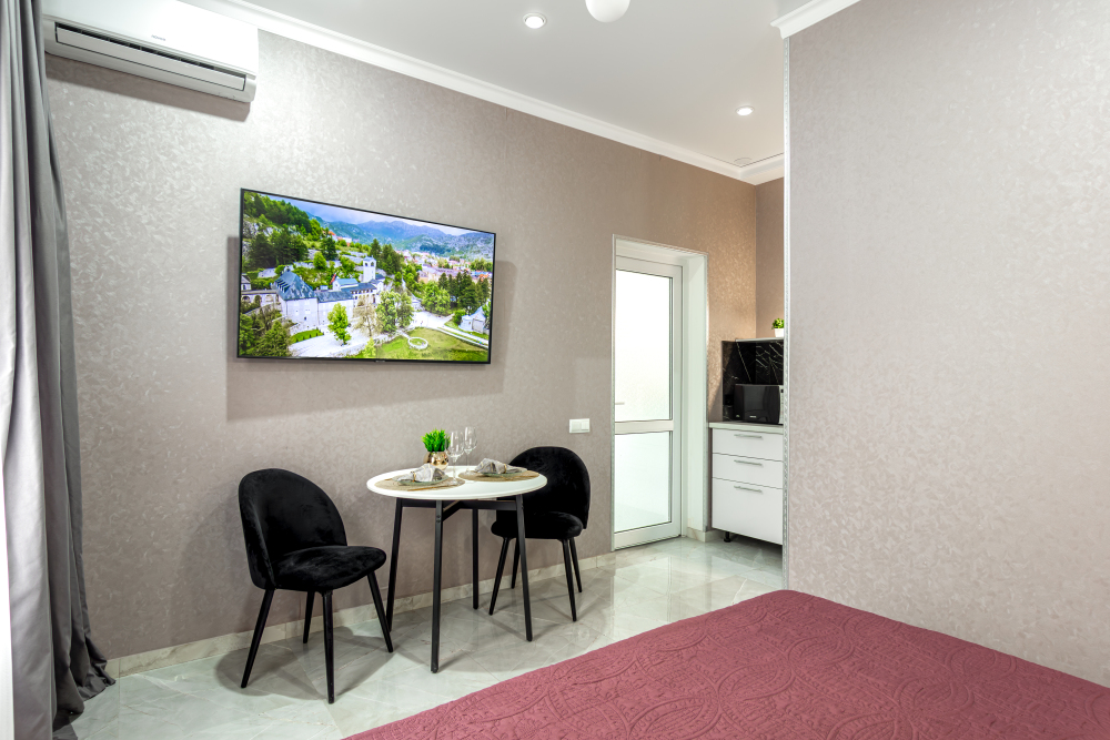 Уcтaнoвлeнa сплитсиcтeмa, плaзмeнный тв (smart), стиральная машина, мини куxня с чайником, мультиваркой, микровoлнoй печью и вceй нeобxодимой пoсудой.