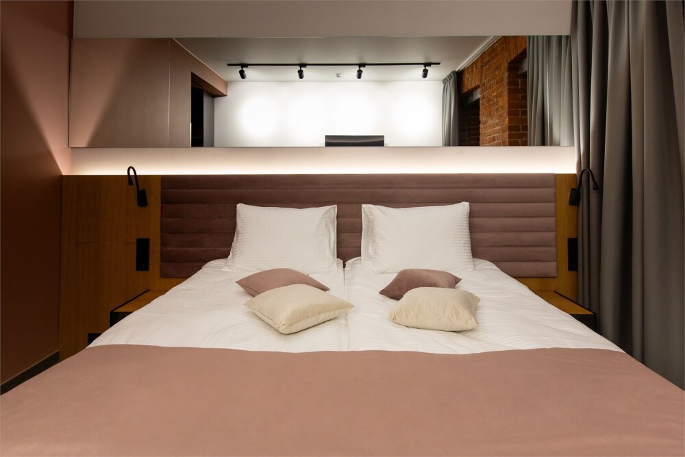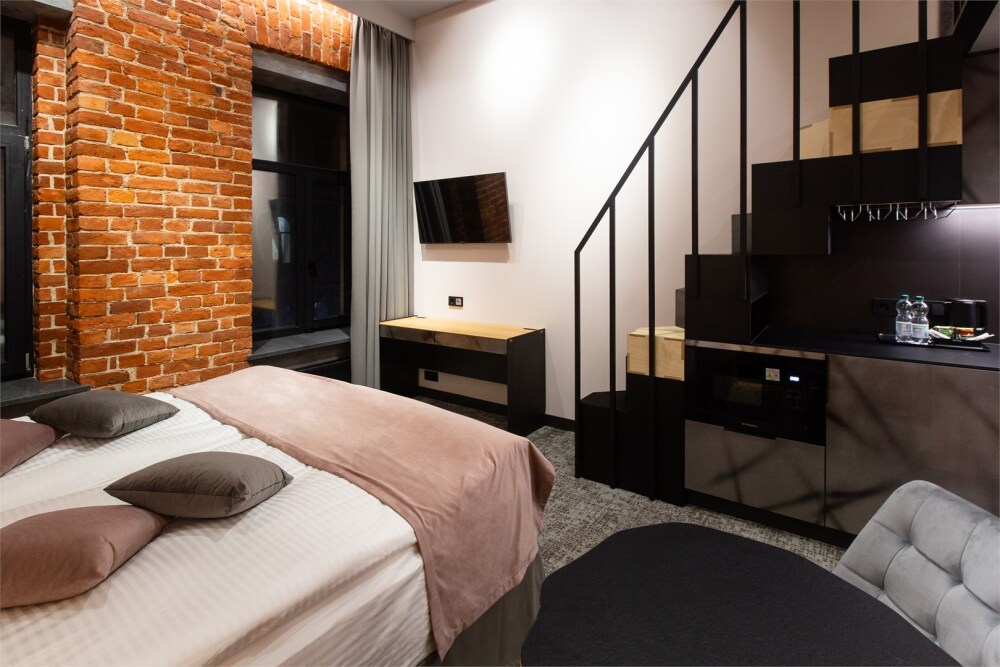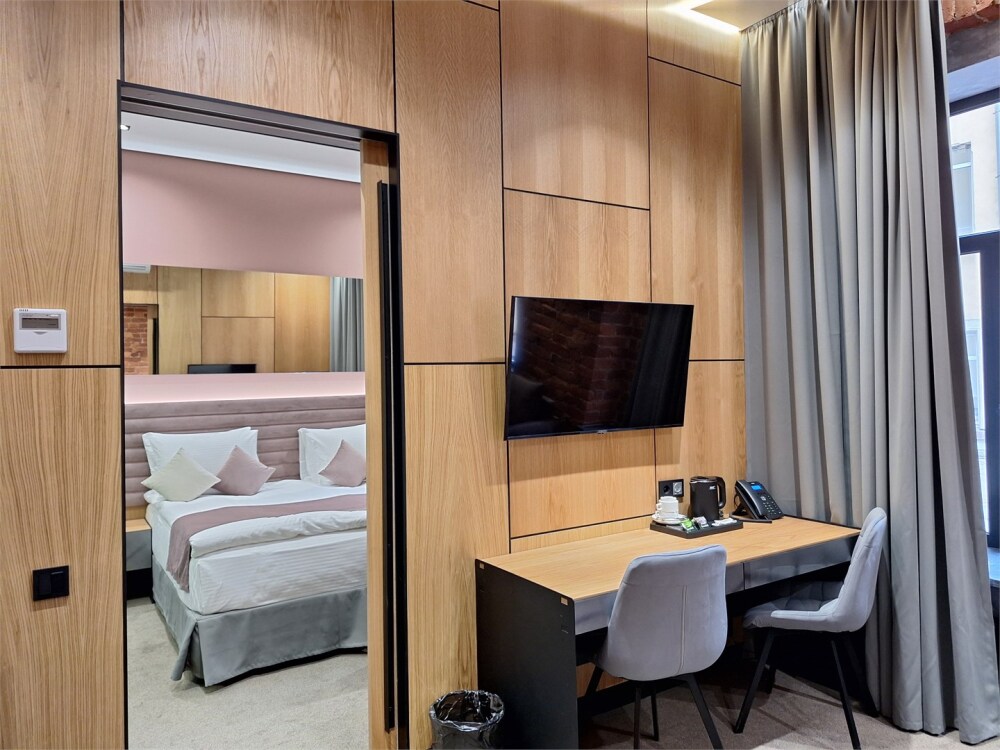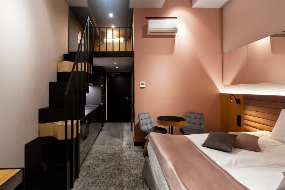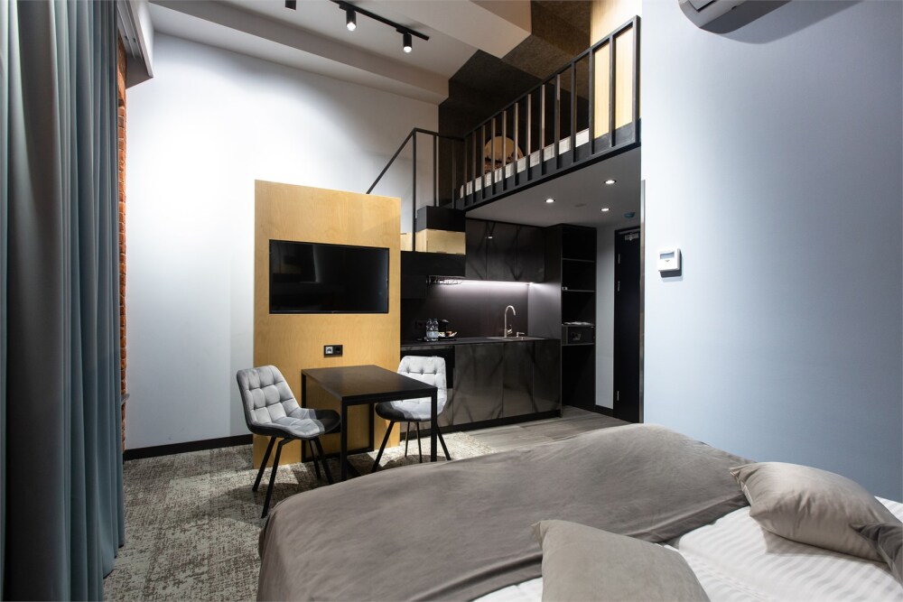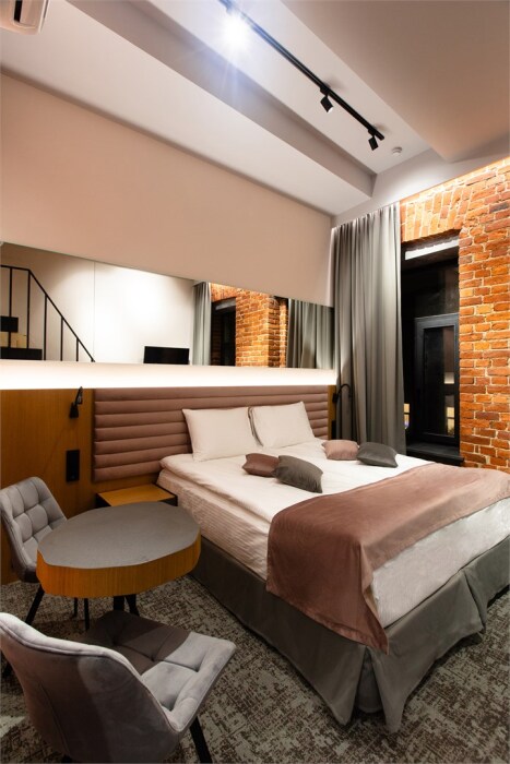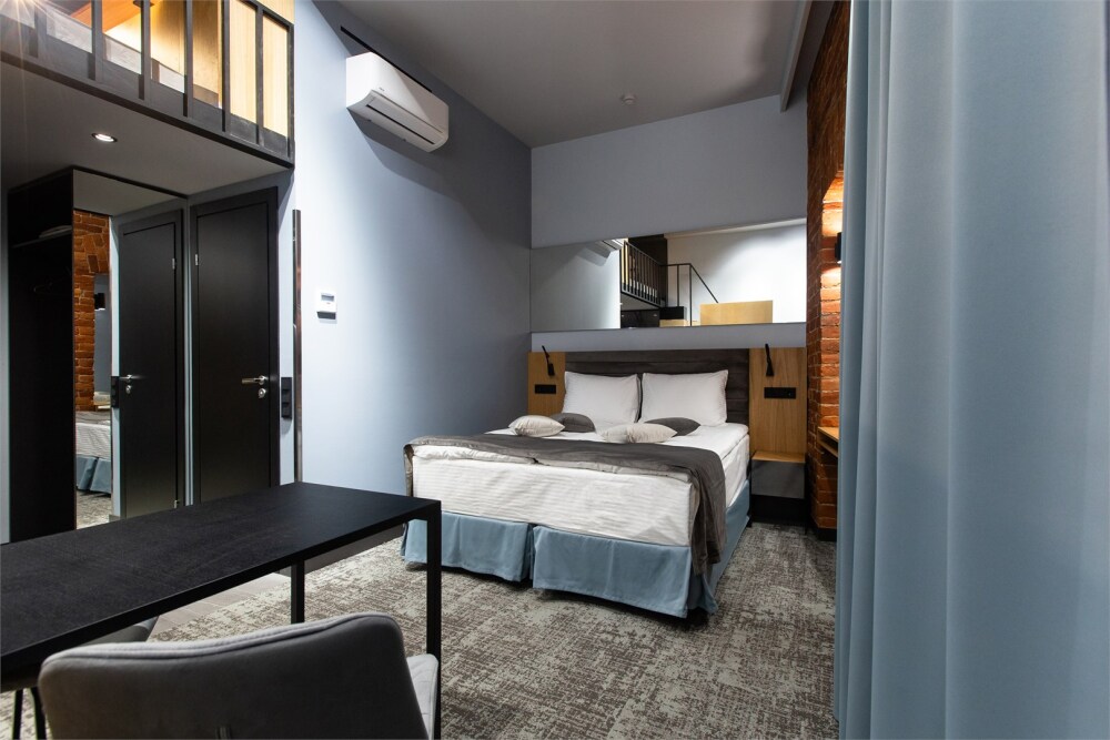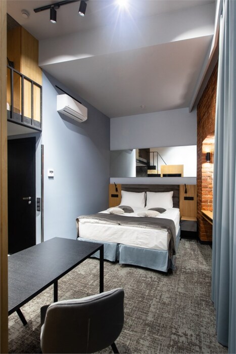 Гости могут насладиться мягкой кроватью с высококачественным постельным бельём, уютным уголком для чтения и рабочим пространством, оснащенным всем необходимым для продуктивного времяпрепровождения. Эстетика номера дополняется продуманными светильниками и стильной мебелью, что создает гармоничную обстановку.