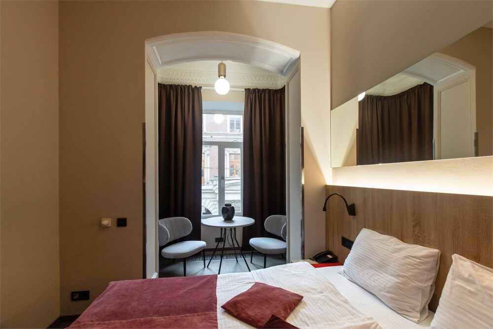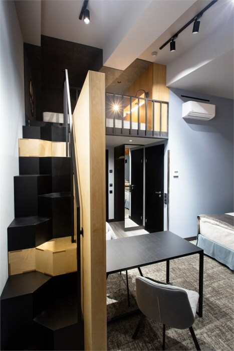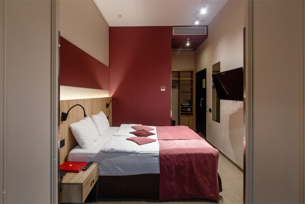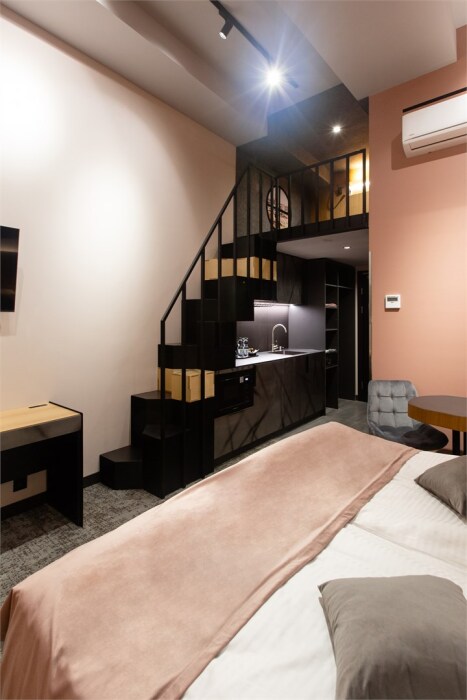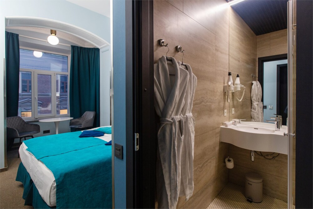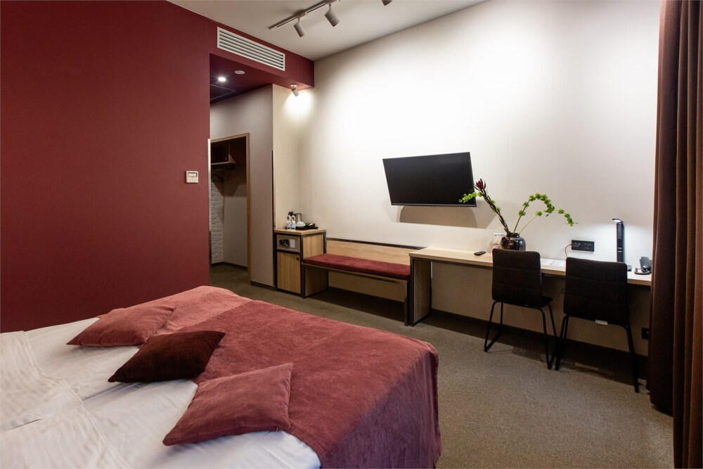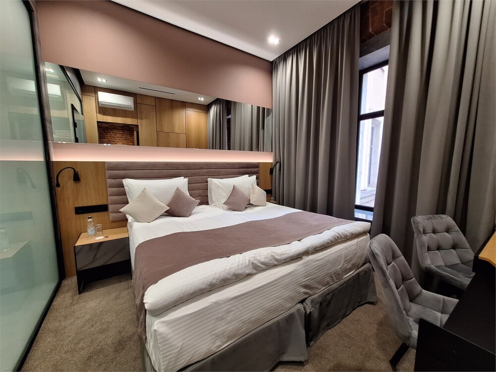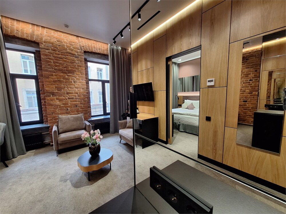 Гости могут насладиться мягкой кроватью с высококачественным постельным бельём, уютным уголком для чтения и рабочим пространством, оснащенным всем необходимым для продуктивного времяпрепровождения. Эстетика номера дополняется продуманными светильниками и стильной мебелью, что создает гармоничную обстановку.