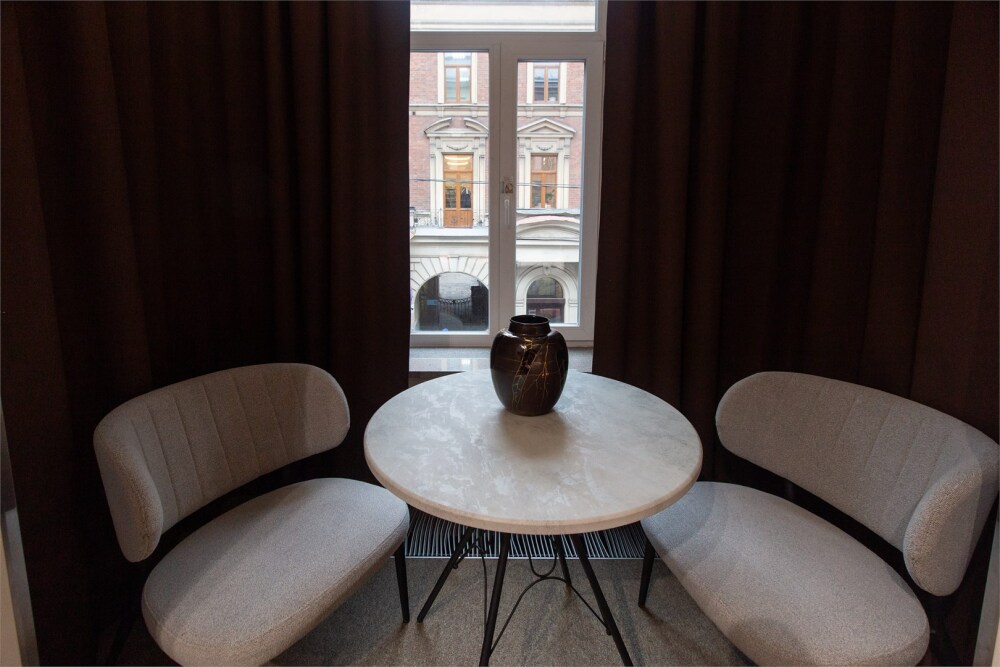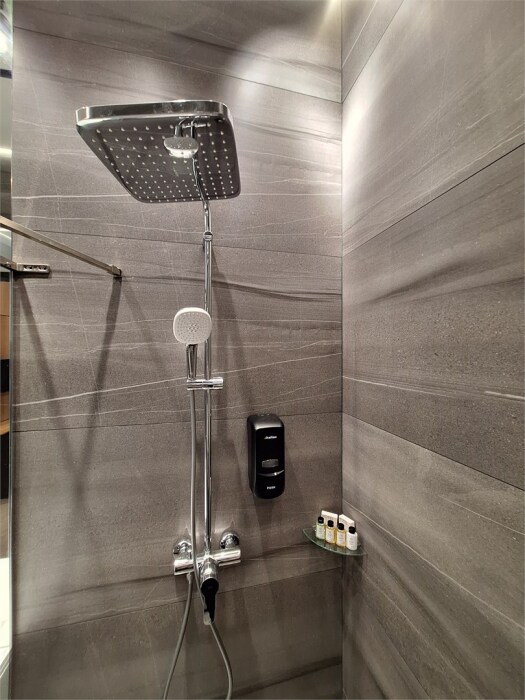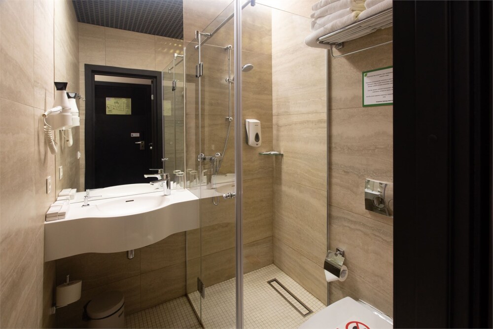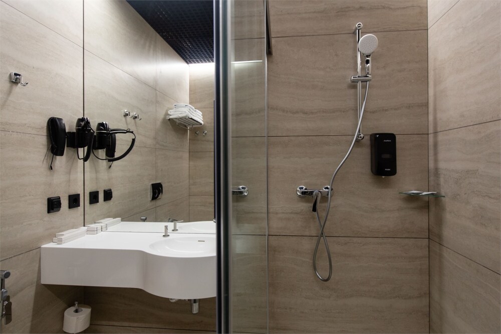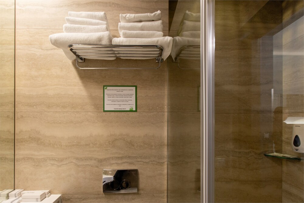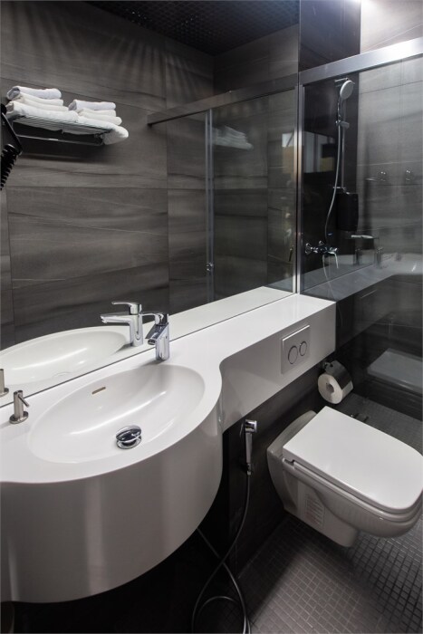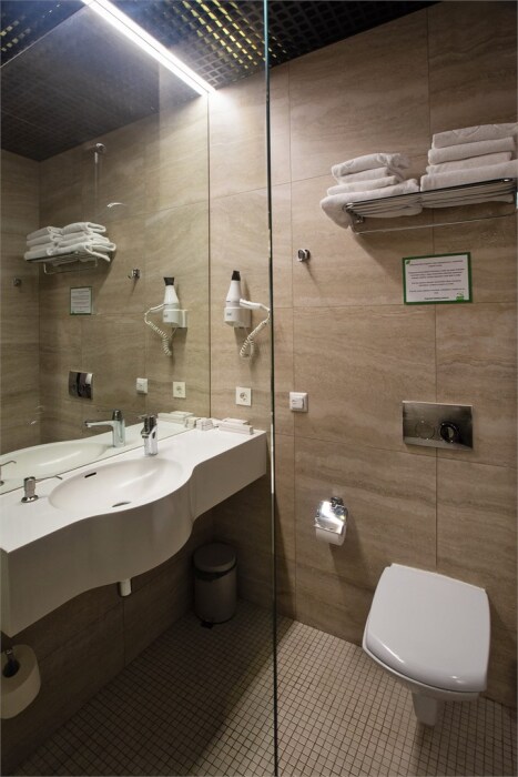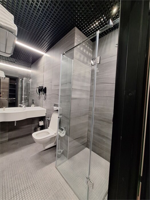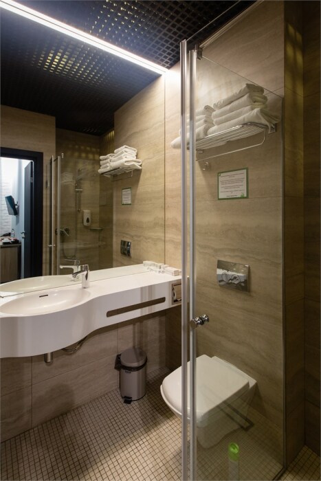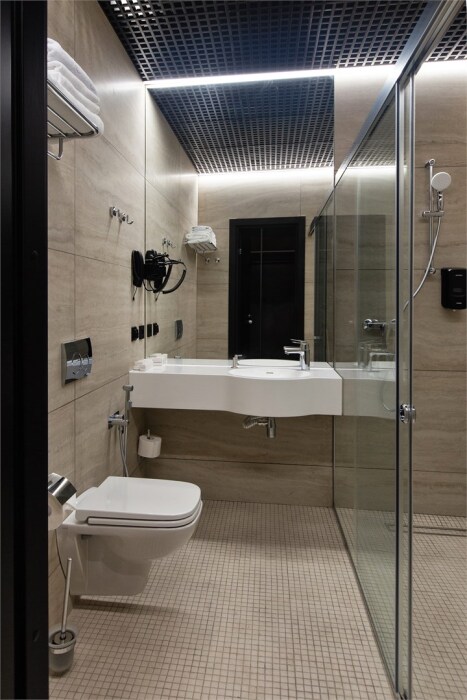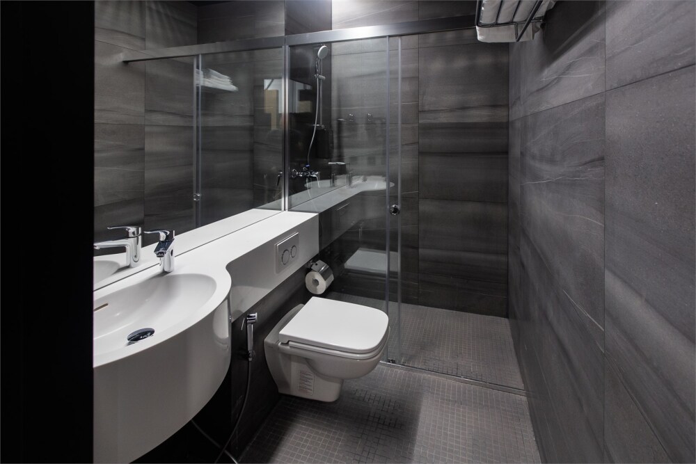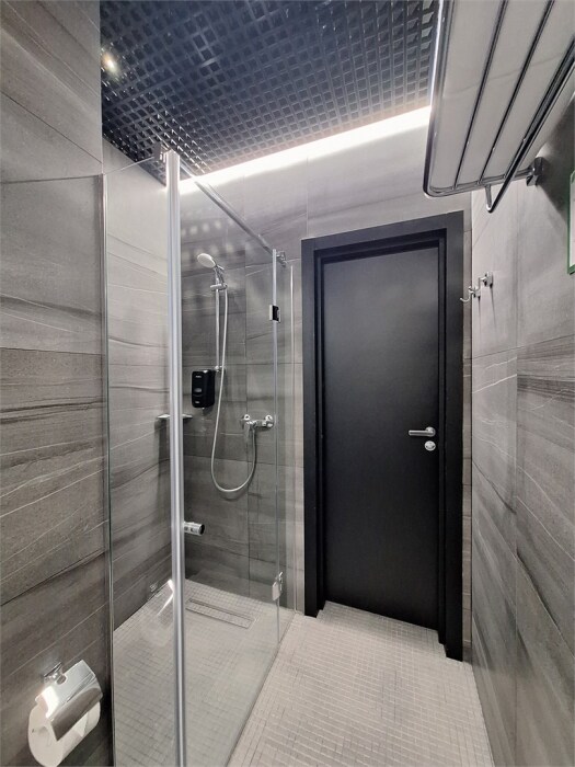 Совершенство пребывания дополняет элегантная ванная комната, оборудованная стеклянным душем и современным туалетом, где вы сможете расслабиться после напряжённого дня. Стимулирующие тихие цвета интерьера и высококачественные материалы способствуют созданию атмосферного уюта.