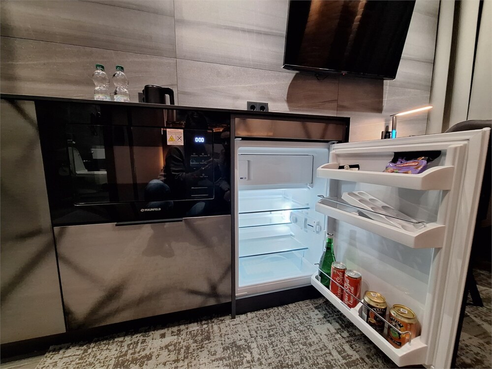 Удобно оборудованная мини-кухня (микроволновая печь, холодильник, электрочайник) станет настоящим благословением для тех, кто предпочитает разогреть еду самостоятельно или наслаждаться утренним чаем, любуясь городским пейзажем через окно. Современные технологии и продуманный интерьер создают атмосферу тепла и уюта - идеальные условия для восстановления сил перед новыми открытиями.