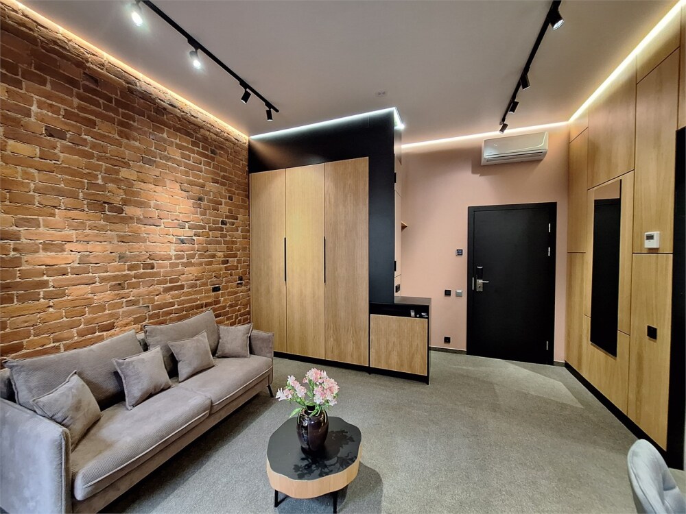 В просторной спальне Вас ждет комфортная двуспальная кровать, обставленная мягким текстилем, что гарантирует спокойный и восстанавливающий сон. Гостиная зона-кабинет оборудована раскладным диваном, предоставляя дополнительное место для отдыха. В гостиной также есть рабочий стол для комфортной работы за ноутбуком.