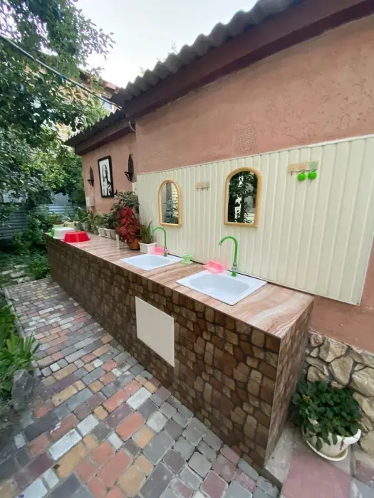 Для удобства гостей в гостевом доме есть общая кухня, где можно приготовить еду или просто насладиться чашечкой кофе. На кухне есть все необходимое для приготовления пищи. Также к услугам гостей – беседка, мангал, парковка.