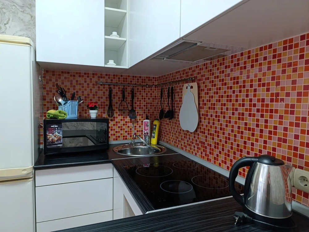 - В квартире Вы найдете все необходимое: полностью оборудованная кухня с индукционной варочной панелью и посудой для готовки.