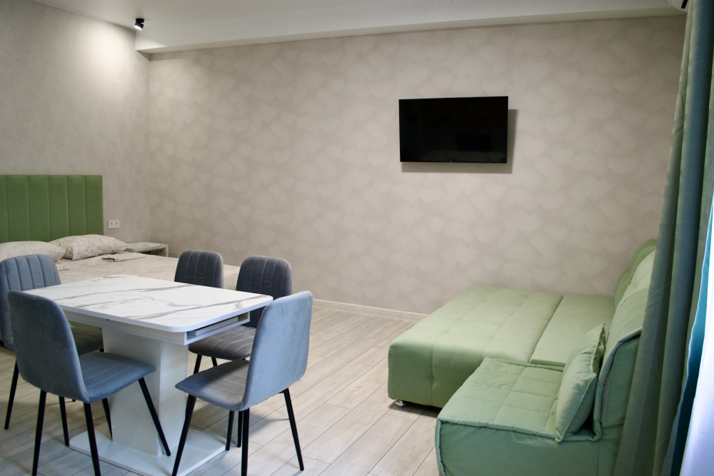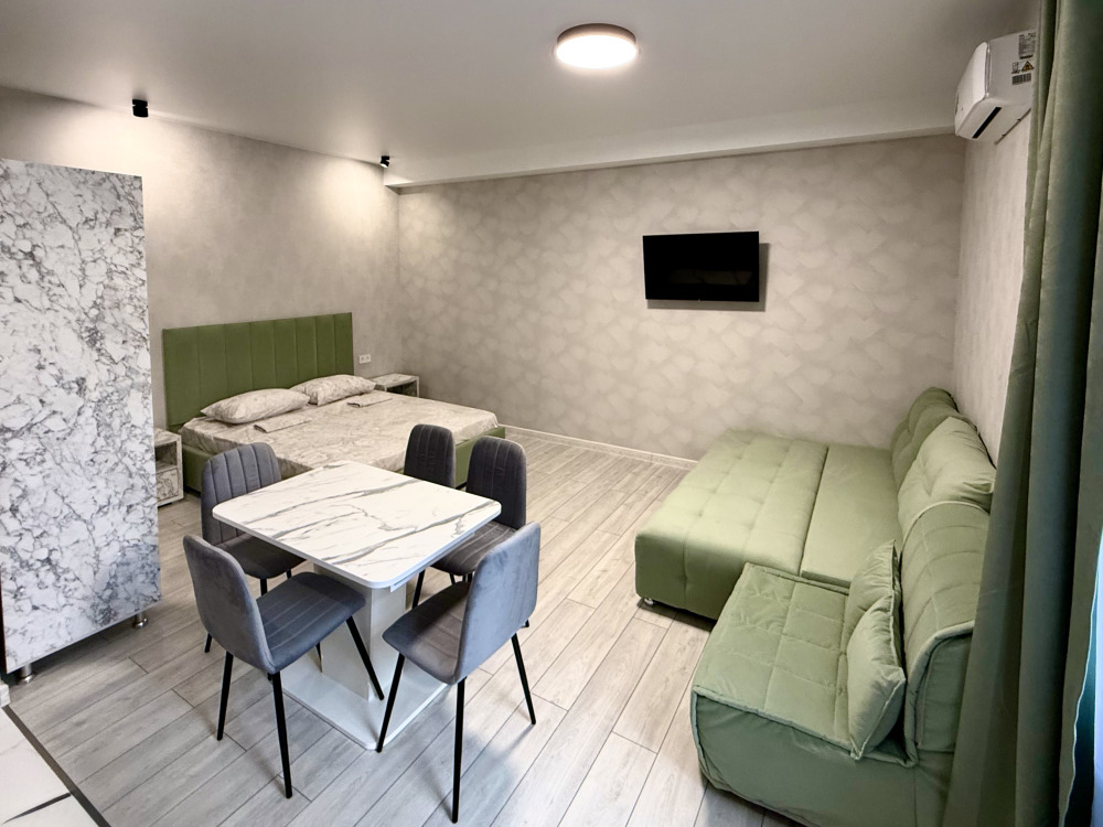 В наших апартаментах Вы найдете все необходимое для комфортного и беззаботного отдыха: бесплатный Wi-Fi, телевизор с плоским экраном и кабельными каналами, сплит-система, утюг и многое другое. Наши пятиместные апартаменты с кухней – это идеальный выбор для тех, кто ценит комфорт, независимость и возможность наслаждаться отдыхом в своем собственном ритме. Забронируйте прямо сейчас и подарите себе незабываемый отдых!