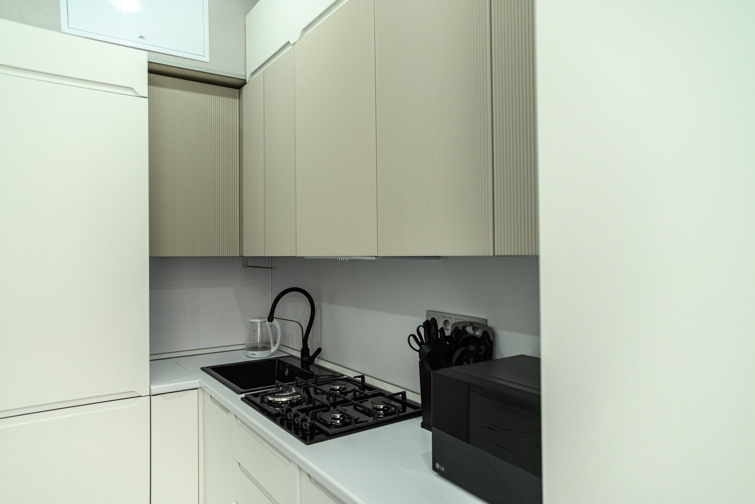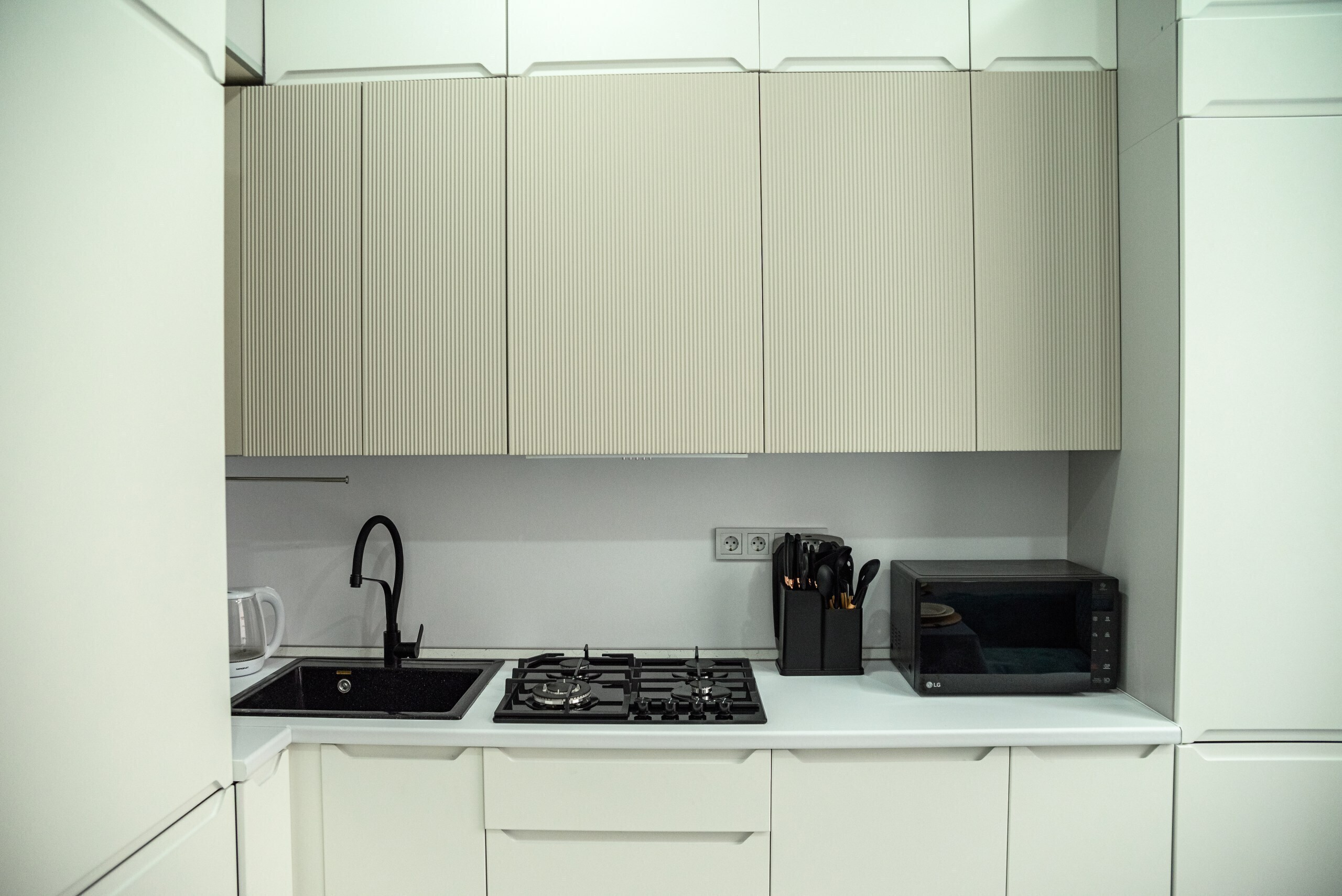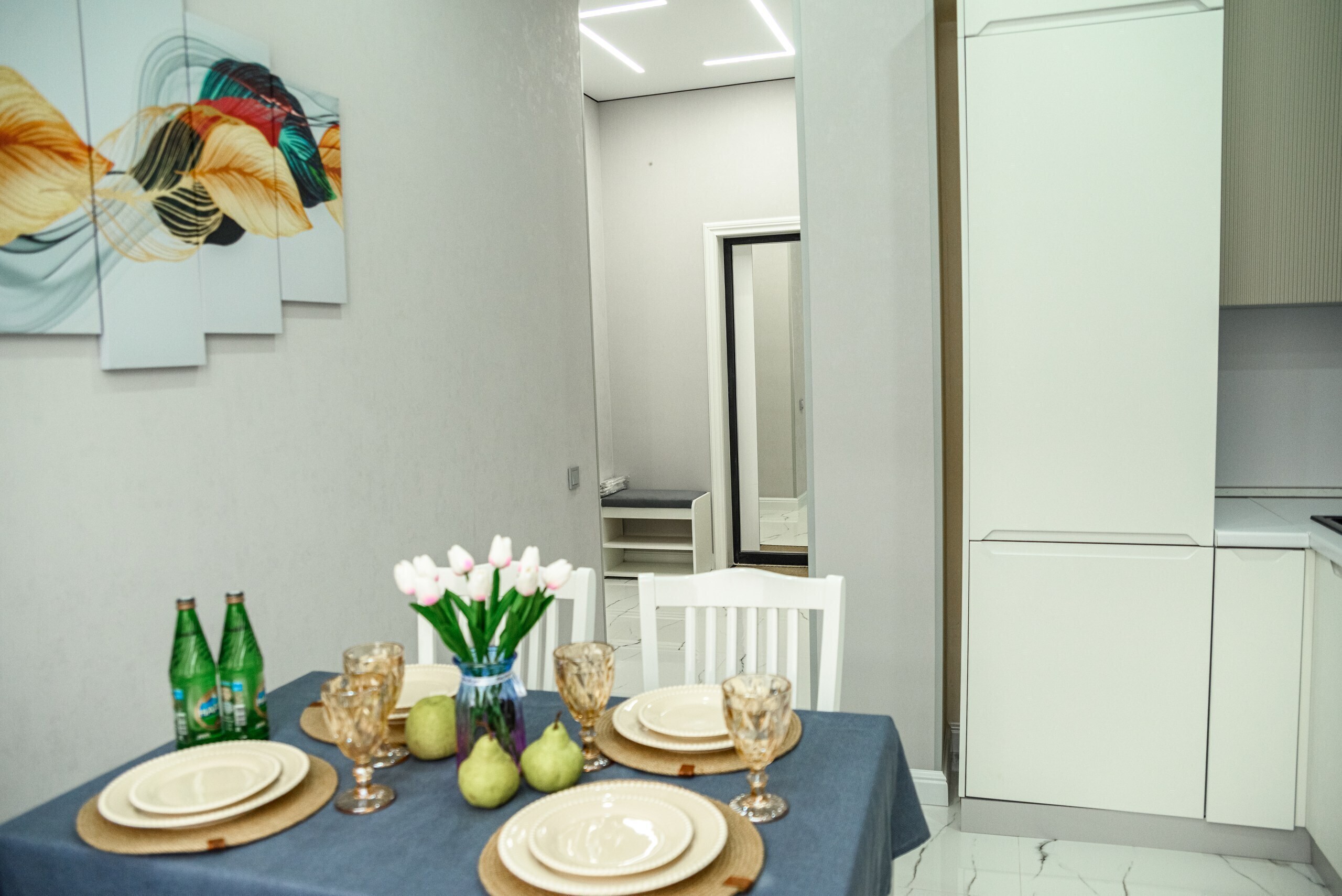 Интерьер выполнен в спокойных пастельных оттенках, дополняясь теплыми деревянными акцентами и натуральными материалами. Каждое помещение оборудовано современной техникой и удобной мебелью. Спальная зона оформлена изысканным постельным бельем премиум-качества и удобными ортопедическими матрасами, обеспечивающими комфортный сон после насыщенного дня прогулок по городу или лечебных процедур в местных санаториях. Санитарная комната укомплектована современной сантехникой и качественным текстилем. Особенное внимание уделено освещению помещения продуманная система точечных светильников создает мягкий свет и придает помещению дополнительное очарование вечером. Для гостей предусмотрена высокоскоростная Wi-Fi сеть, идеальный вариант для тех, кто совмещает отдых с работой удаленно.