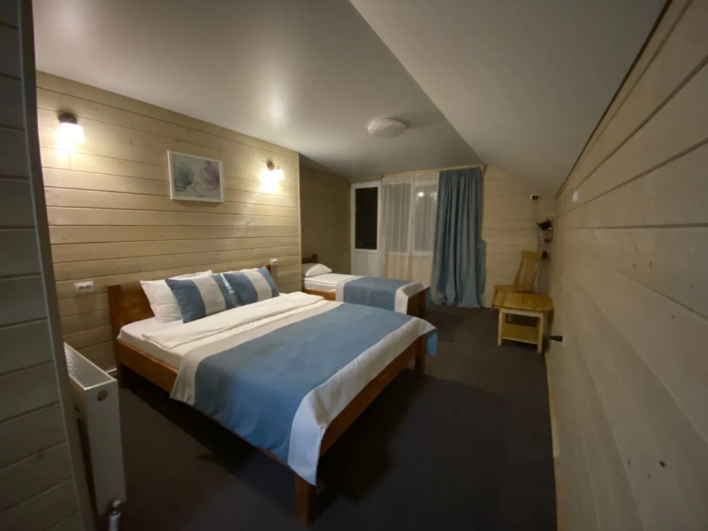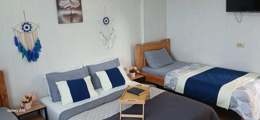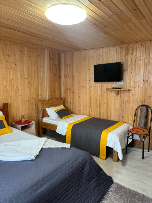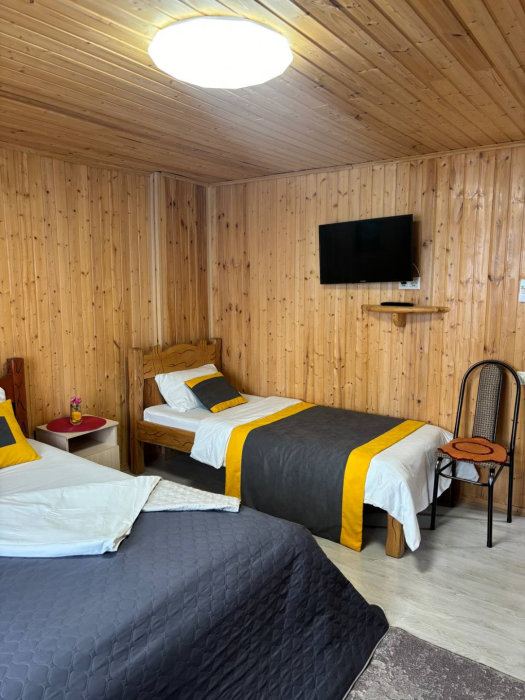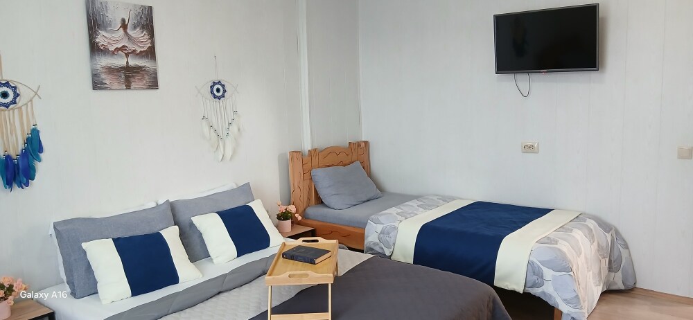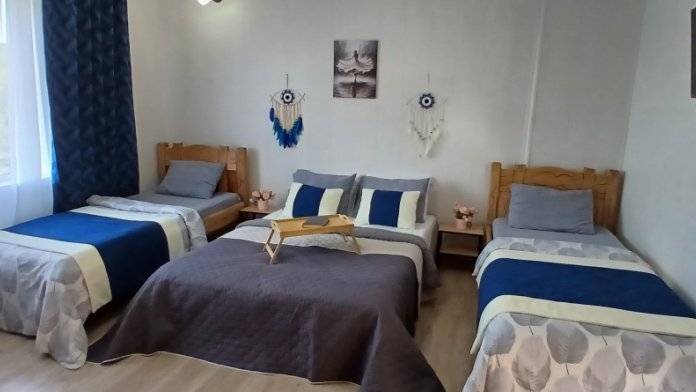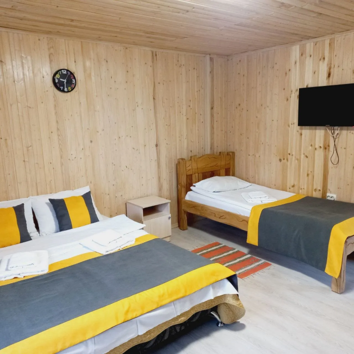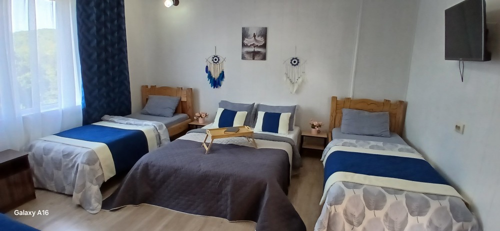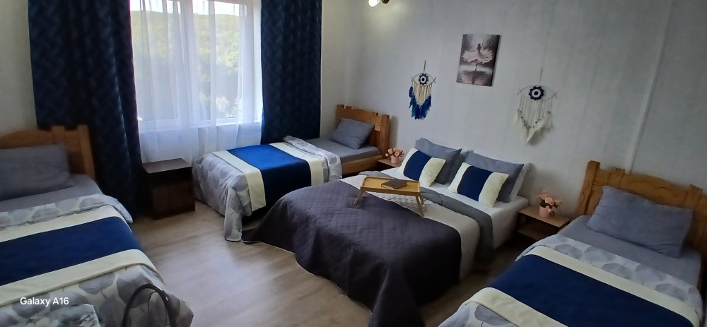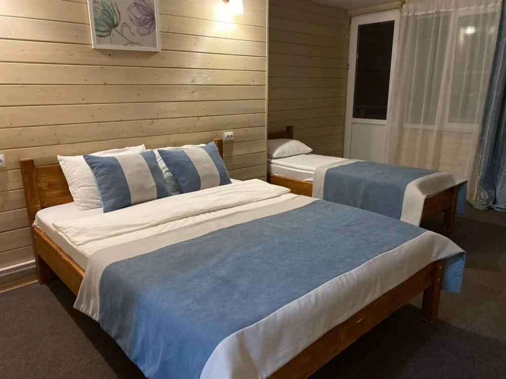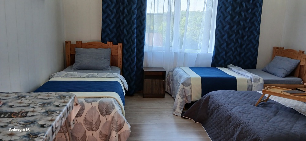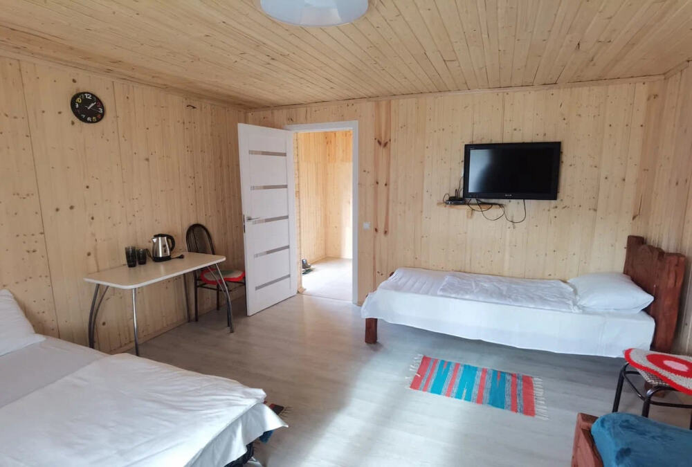 Предлагаемые номера рассчитаны от 2 до 6 спальных места, и оснащены прикроватными тумбочками, комплектом полотенец и телевизором, бесплатным Wi-Fi. Санузел свой, со средствами гигиены.