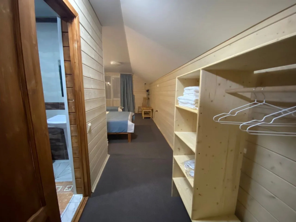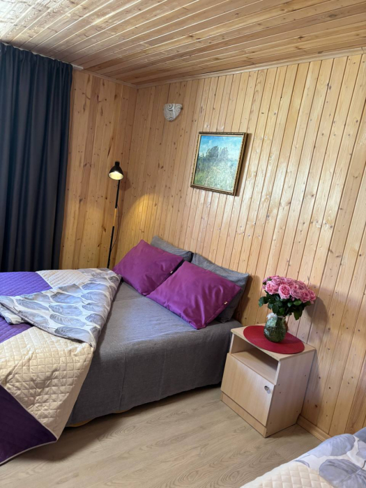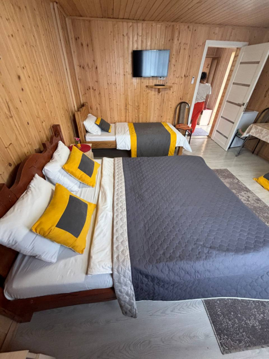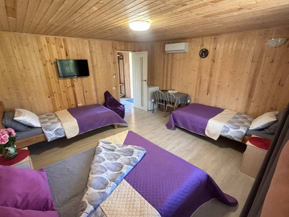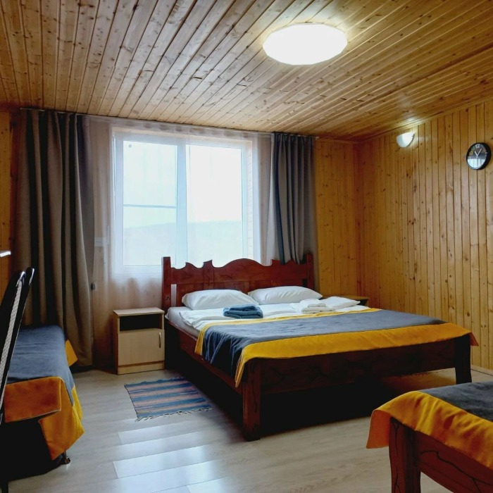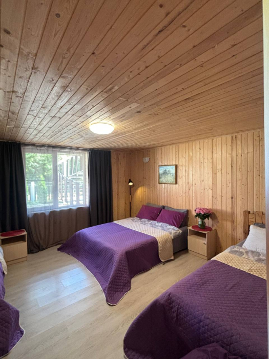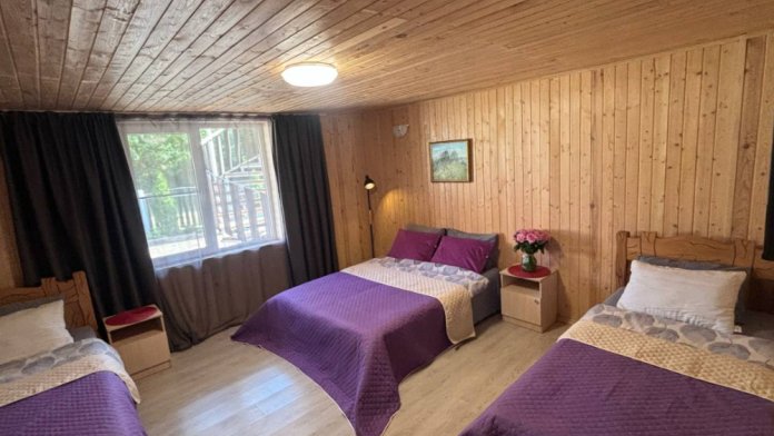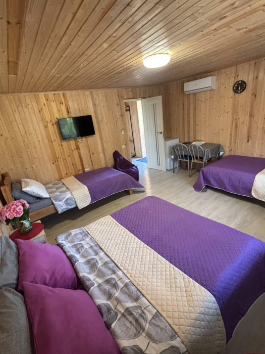 Номер для 5-ти человек. В нем расположено односпальная кровать, двуспальная кровать и диван-кровать