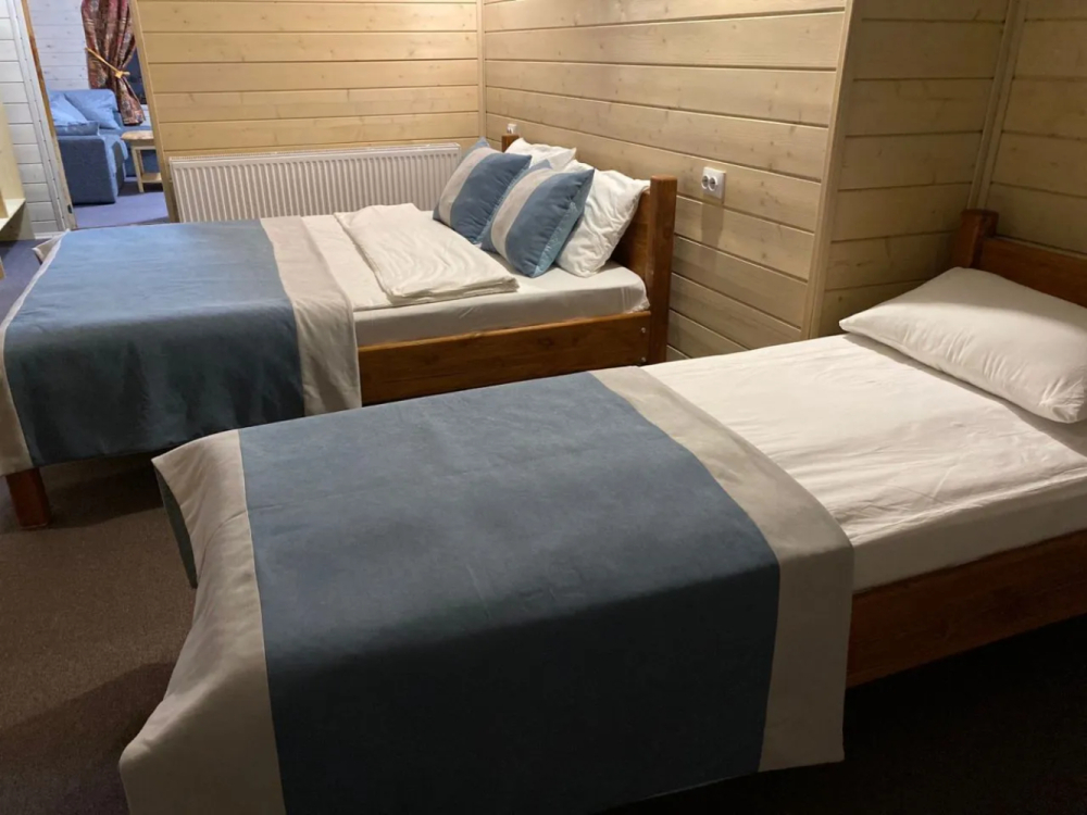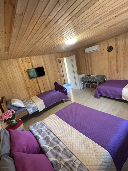 Номер для 6 гостей. В нем расположено 4 односпальные кровати 1 двуспальная кровать и диван-кровать.