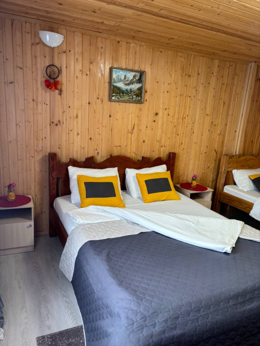 Номер для 3-х человек. В нем расположено односпальная и двуспальная кровать. Бассейн и завтраки входят в стоимость.