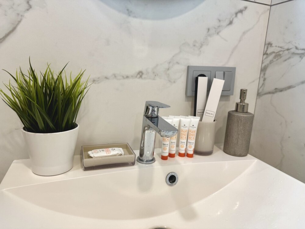- для комфортного пребывания дополнительно мы предоставляем тапочки, гигиенический набор (шампунь, гель для душа, зубная щетка с пастой), фен, утюг, стиральную машину, кондиционер;