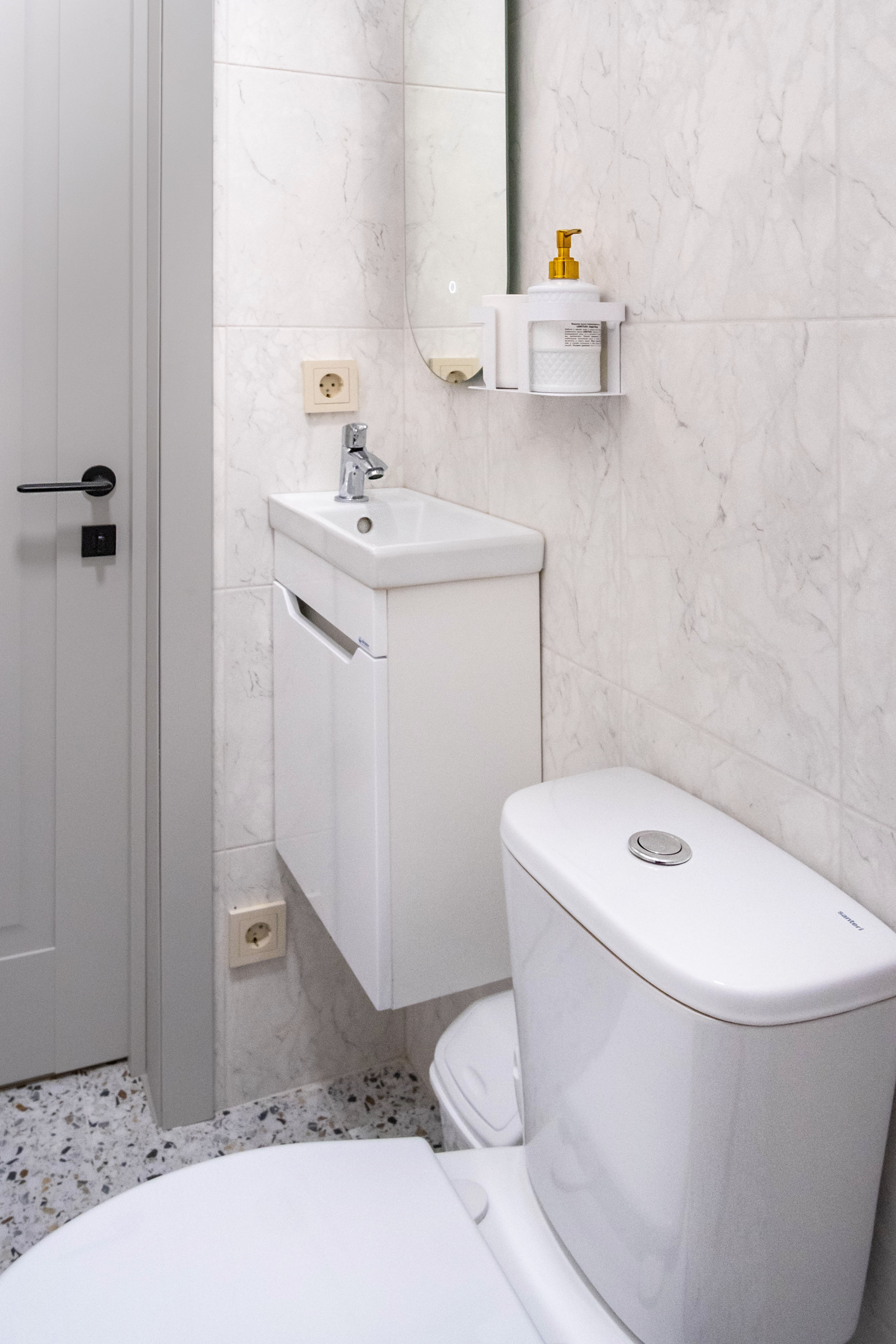 - ЖК-телевизор с функцией смарт-тв, стиральная машина, гладильные принадлежности, фен;