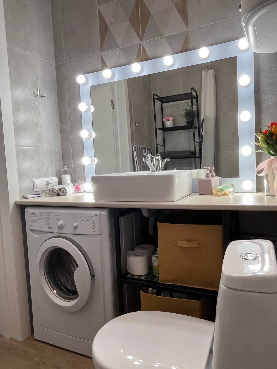 ⁃ Стиральная машина, холодильник, микроволновая печь, аэрогриль, чайник, фен, утюг.