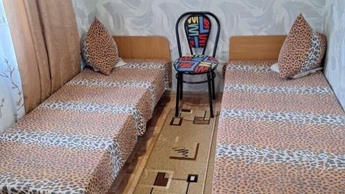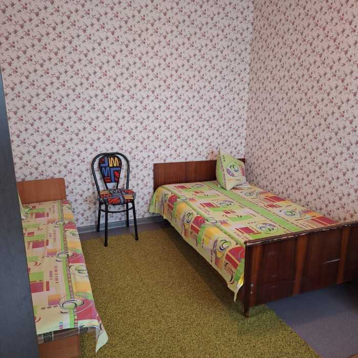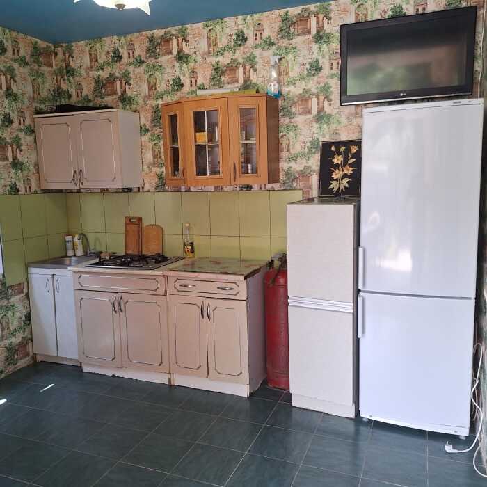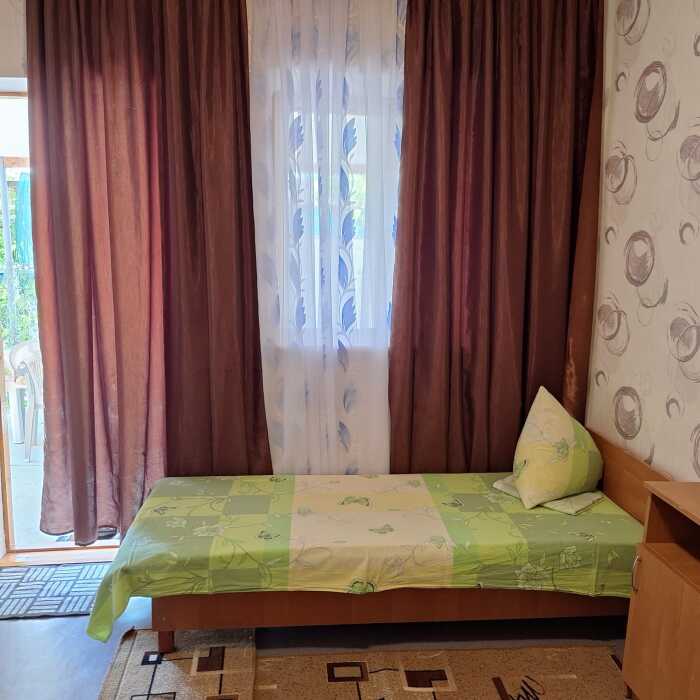 В домике 3 комнаты на 4, 2, 3 человека. В каждой комнате есть кондиционер. Телевизор есть на кухне и в комнате на двоих. Туалет и душ пристроены отдельно. На кухне есть вся необходимая посуда от стопок до сковородок, микроволновка, электрочайник, газовая плита.