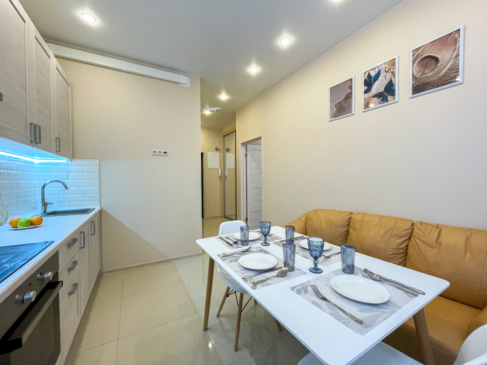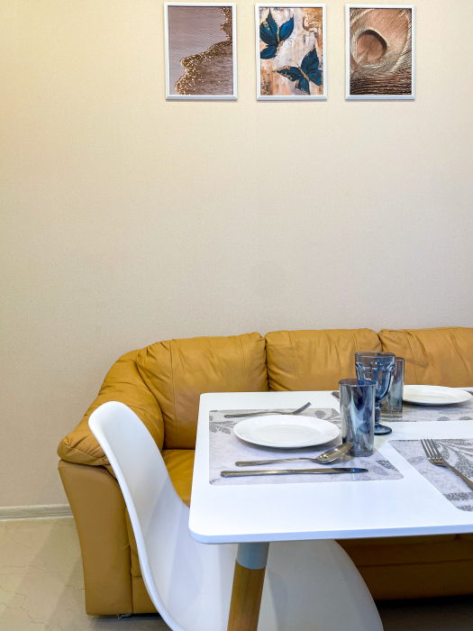 - Укомплектованная кухонная зона - столовые приборы, посуда, чай, кофе, сахар, масло;