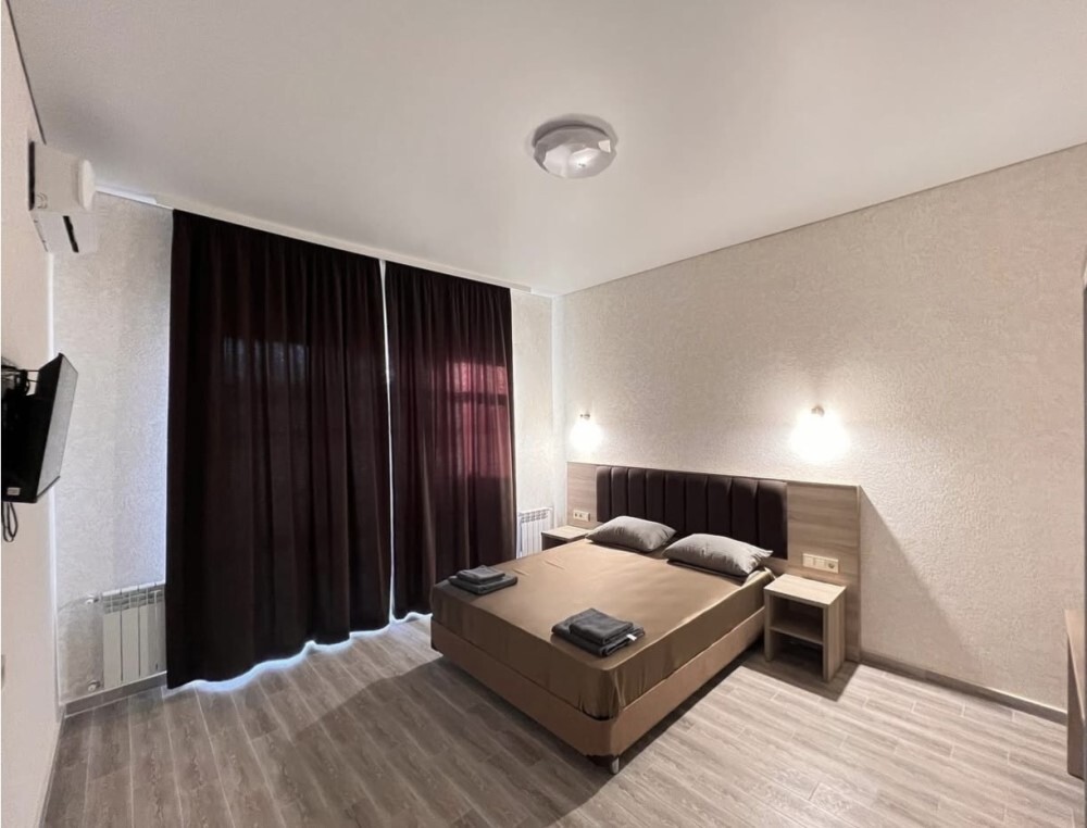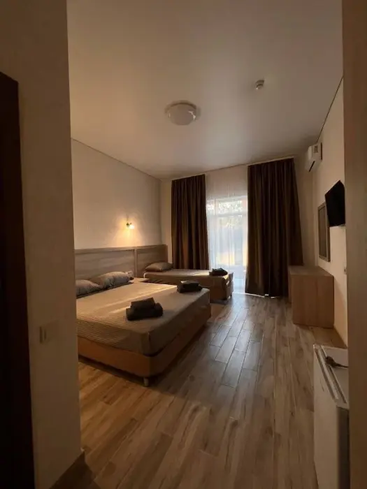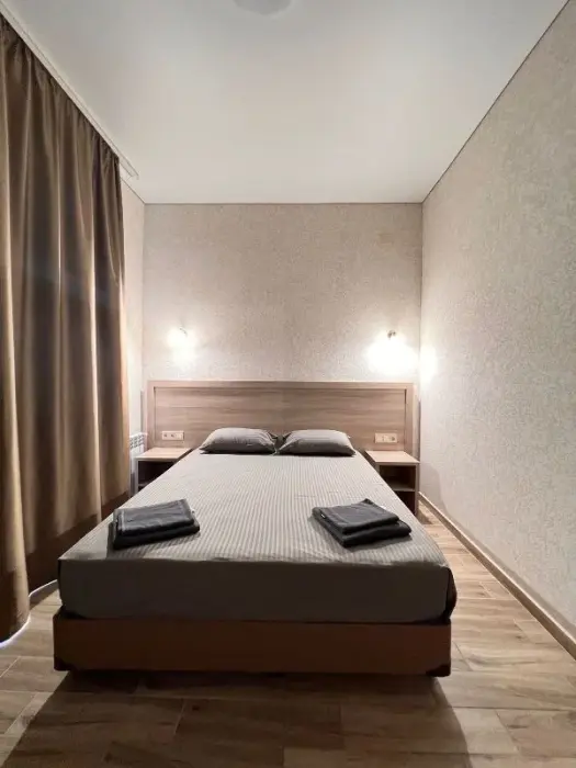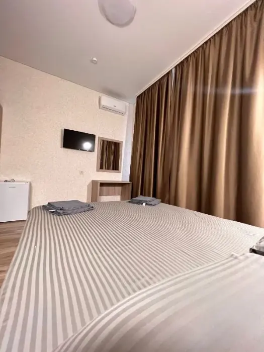 Для всех желающих предлагает комфортные номера, оснащенные необходимой мебелью и техникой: телевизор, кондиционер, холодильник, чайник, фен.