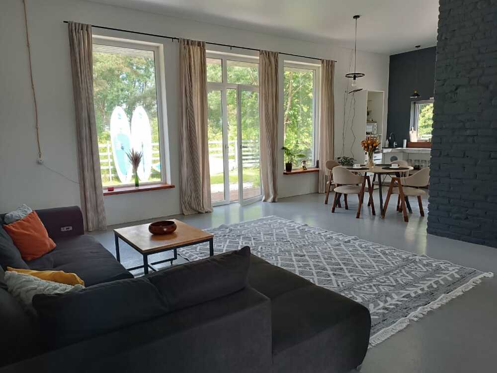 В доме три отдельные спальни. Мастер-спальня с отдельным санузлом и ванной кровать двухместная (180х210). Спальня- гостевая двухместная кровать (140х200). Спальня-детская с двухспальной кроватью (160х200), дополнительно диван-раскладушка (ikea). Общая гостевая с совмещенной кухней и обеденной зоной, большим чилаут диваном и выходом на придомовую террасу. Душевая и санузел.