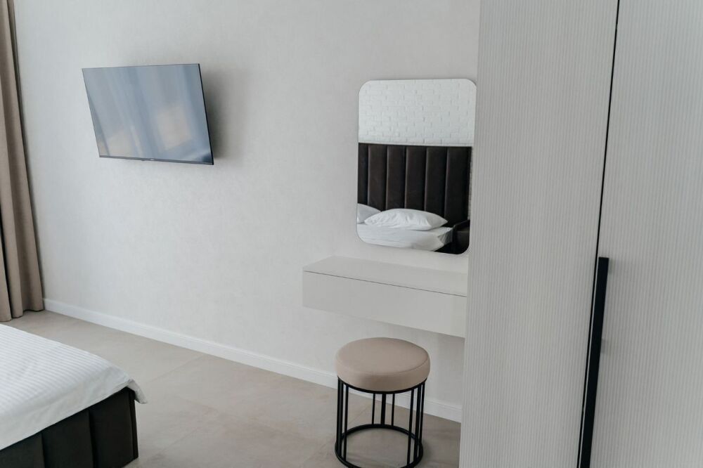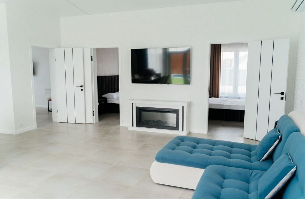 ️ - три отдельные спальни, оборудованные всем необходимым для комфортного проживания. Двухспальные кровати с высоким матрацем, телевизор, в каждой спальне косметический столик;