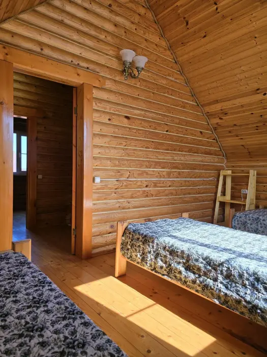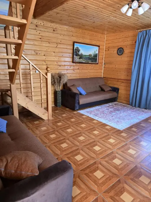Две изолированные спальни наверху - установлены спит-системы - горячая вода, фен, постельное белье, полотенца - на первом этаже диван раскладывается на 2 места. В стоимость проживания входит пользование домом, также в Вашем распоряжении территория комплекса (парковка, мангальная зона, гамаки, детская площадки, беседки, детский транспорт: самокаты, велосипеды. Детская кровать и манеж по запросу.