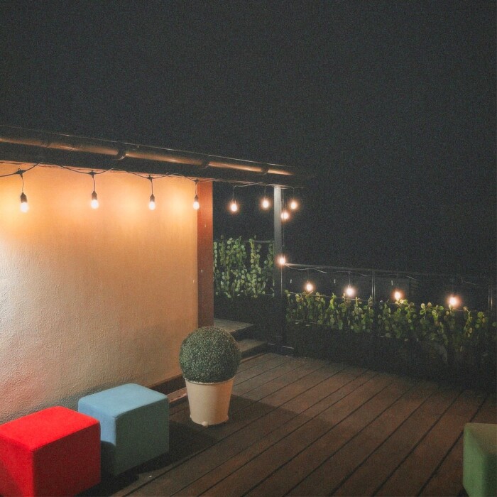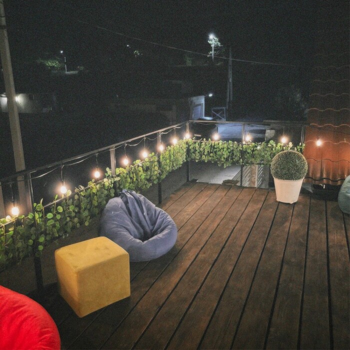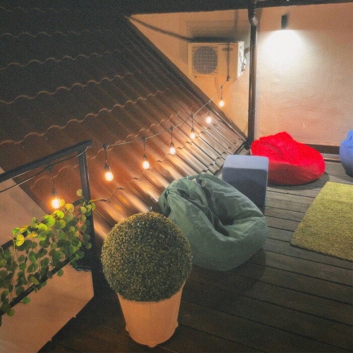 - Открытая верхняя терраса с креслами