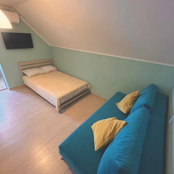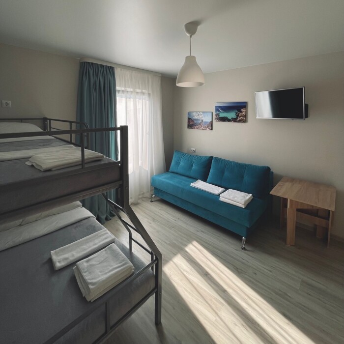 В номере: 1 двуспальная кровать, 1 односпальная кровать и 1 двуспальный диван.