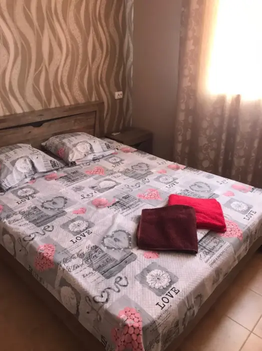 Номер двухкомнатный находится на втором и третьем этажах дома.В номерах есть душ.туалет.кондиционер.холодильник.телевизор.шкаф.тумбочки.стол и стулья.Постель и полотенца предоставляются.
