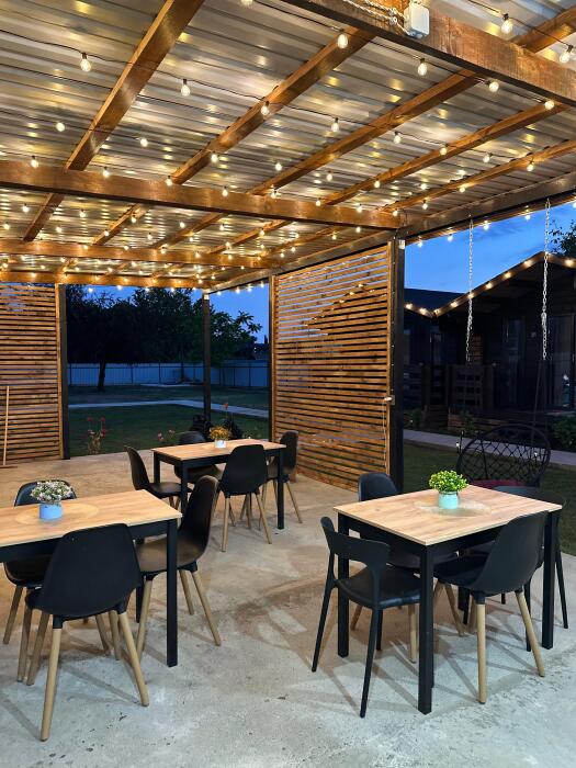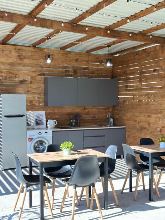 На территории базы отдыха, гости могут воспользоваться укомплектованной летней кухней, где можно готовить свои любимые блюда на свежем воздухе, для любителей блюд на открытом огне есть зона барбекю.