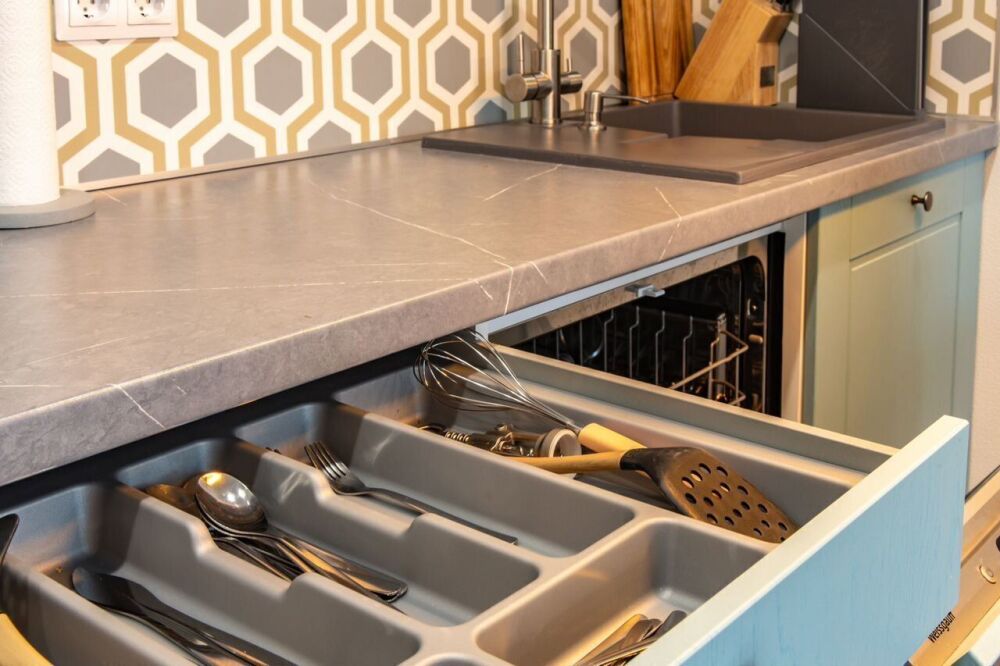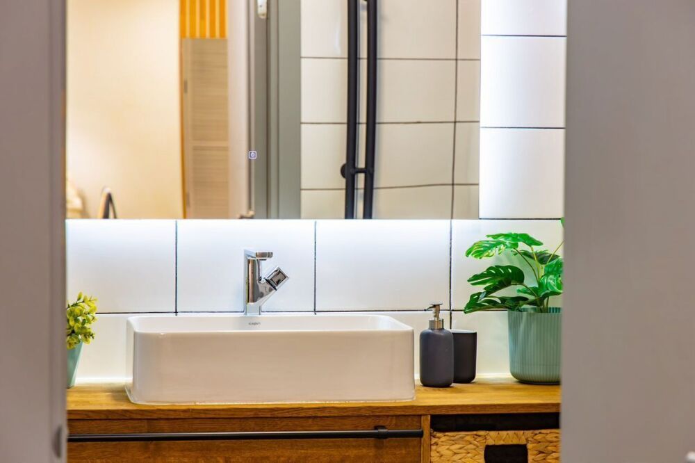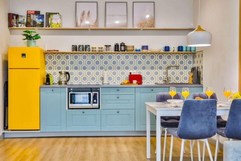 - кухня полностью укомплектована: посудомоечная машина, индукционная плита, микроволновая печь с функцией духовки, холодильник, чайник, тостер;