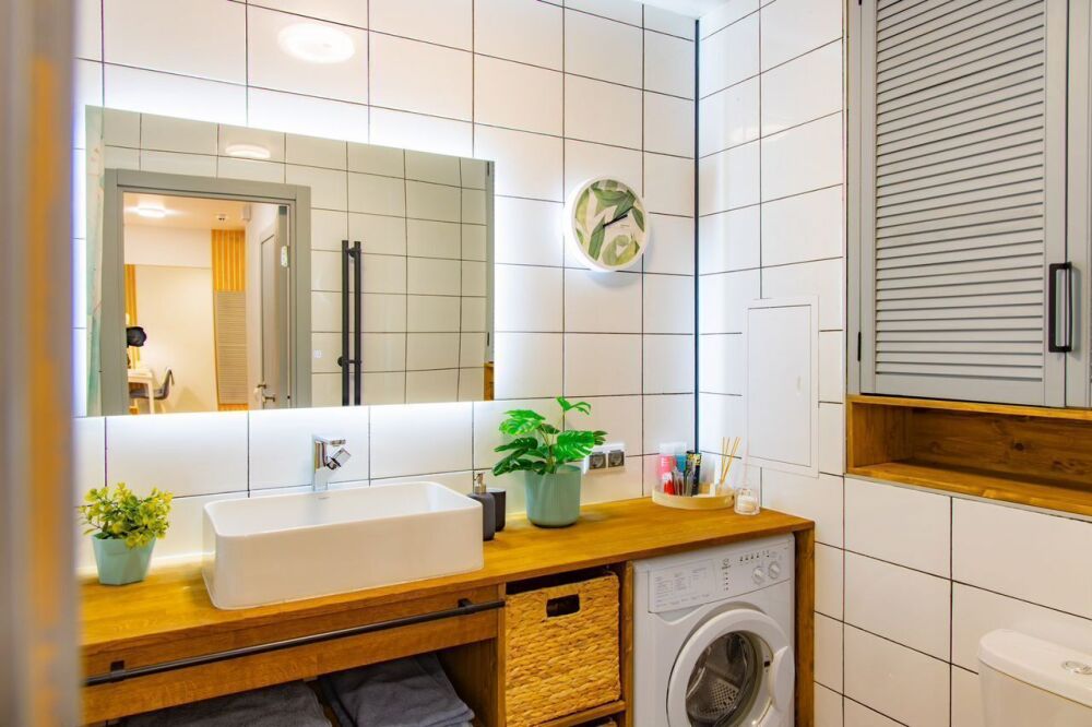 - 2 санузла, в обоих раковины и унитазы, в большом - ванна и стиральная машина;