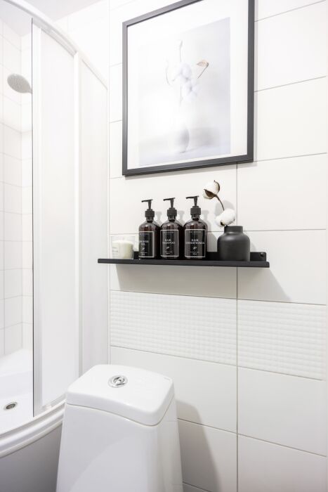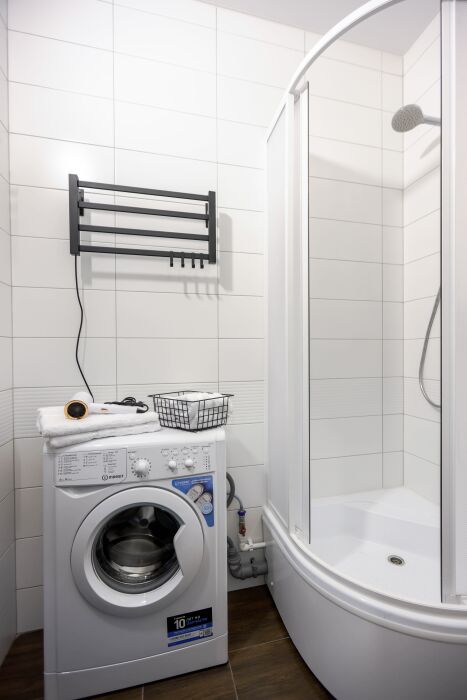 - в ванной комнате душевая кабина, фен, гель для душа и шампунь.