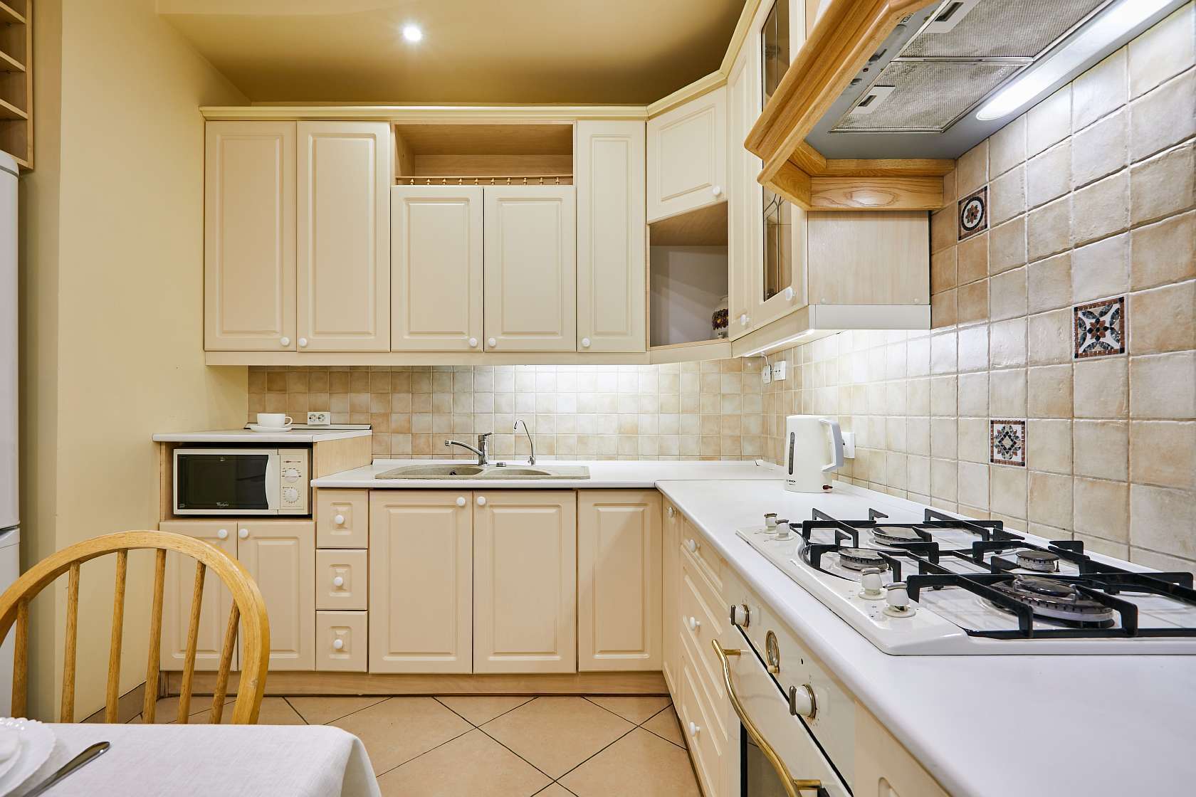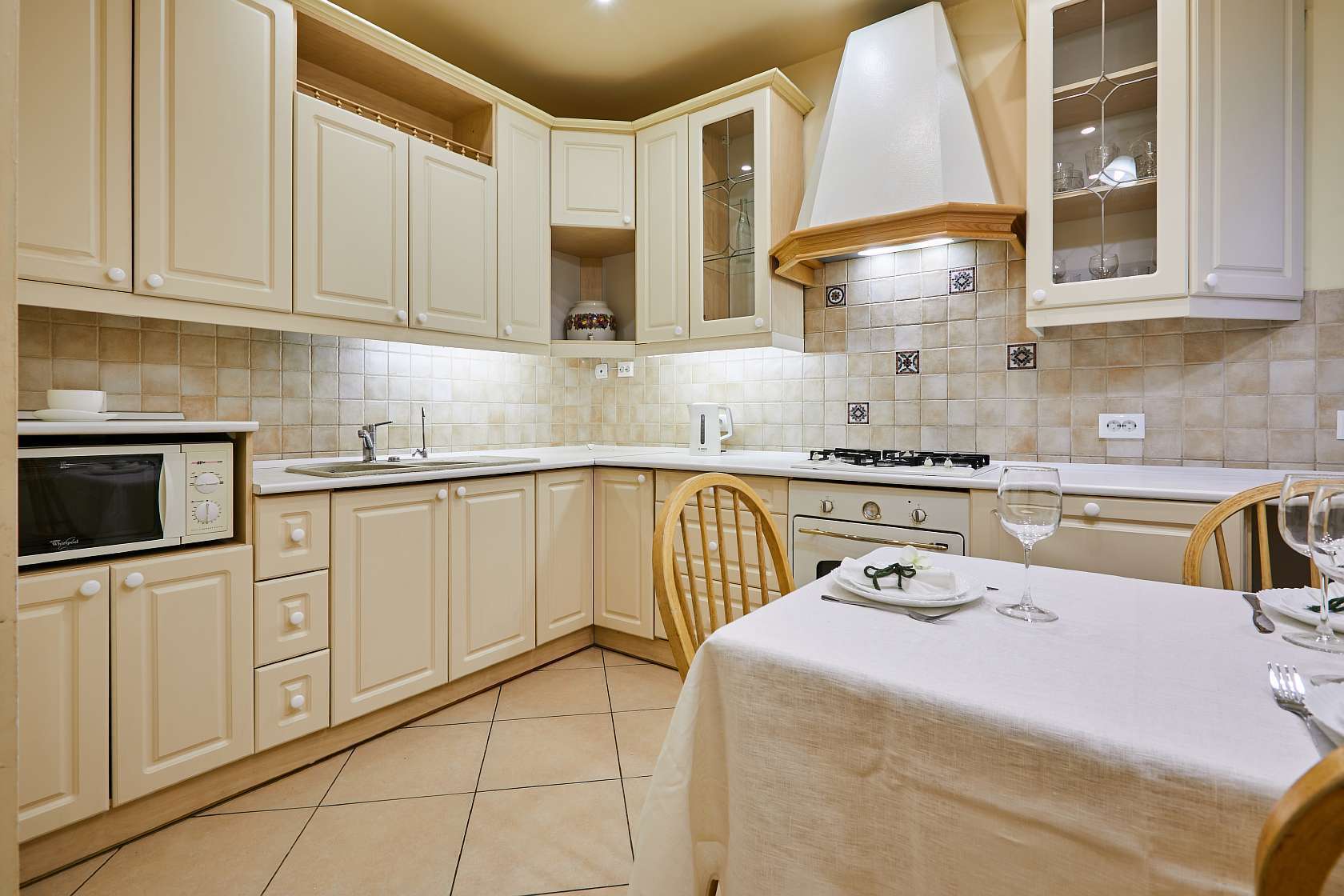 - плита, свч и посуда для готовки, посудомойка;