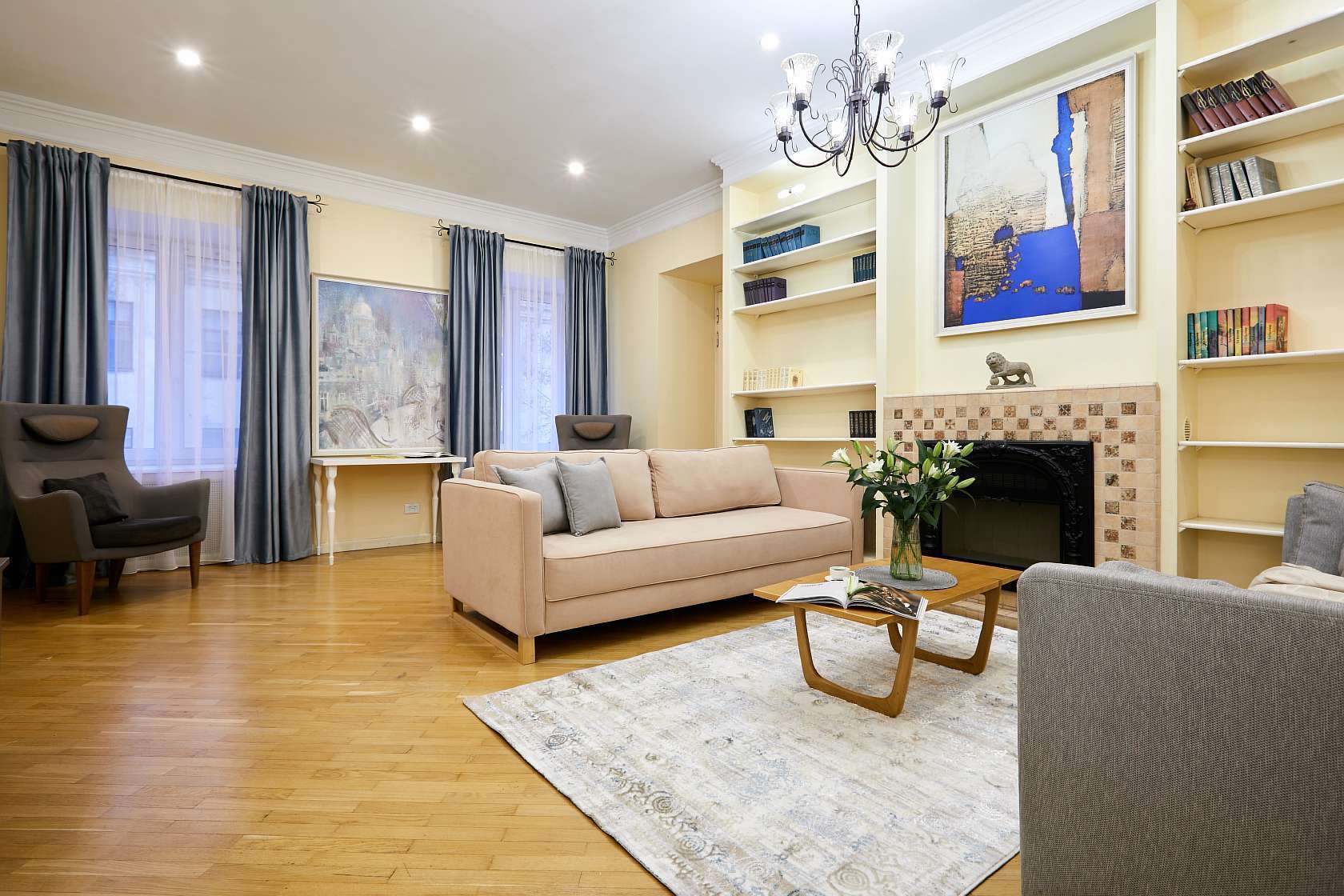 Мы предлагаем в аренду 4-комнатную квартиру в Золотом треугольнике. Исторический центр города. В шаговой доступности Эрмитаж, Дворцовая площадь и набережная, Марсово поле и все ключевые достопримечательности города. Невский проспект в 5 минутах пешком. Метро «Невский проспект», «Гостиный двор», «Адмиралтейская площадь» в 7-10 минутах пешком. Рядом с домом множество ресторанов, пекарен, кафе, магазинов.