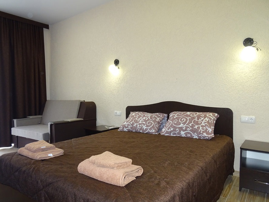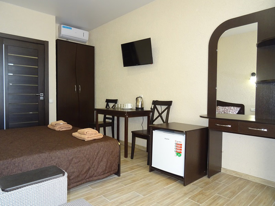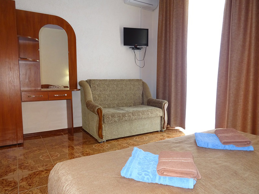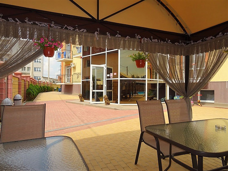 Услуги, входящие в стоимость: проживание, бассейн, Wi-Fi-доступ в интернет, автостоянка, оборудованная детская площадка, трансфер из города Саки, гладильные принадлежности (по требованию).