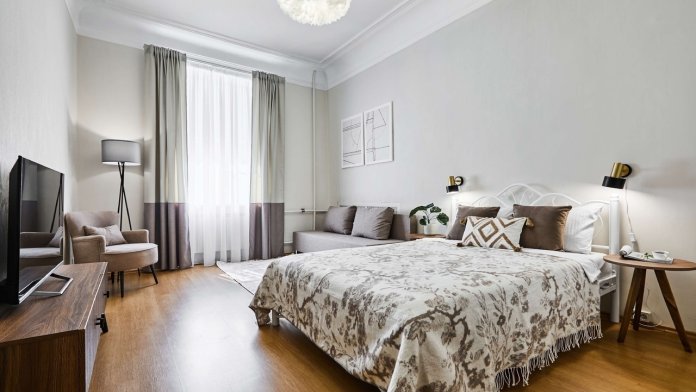 - 3 изолированные спальни, в них двуспальные кровати 180*200 +160*200 + 140*200 + 2 раскладных дивана;