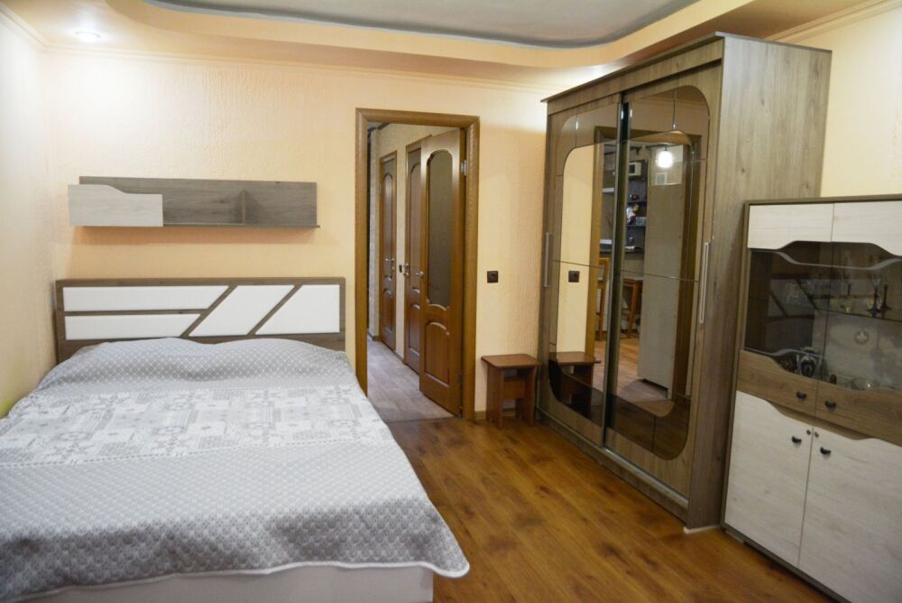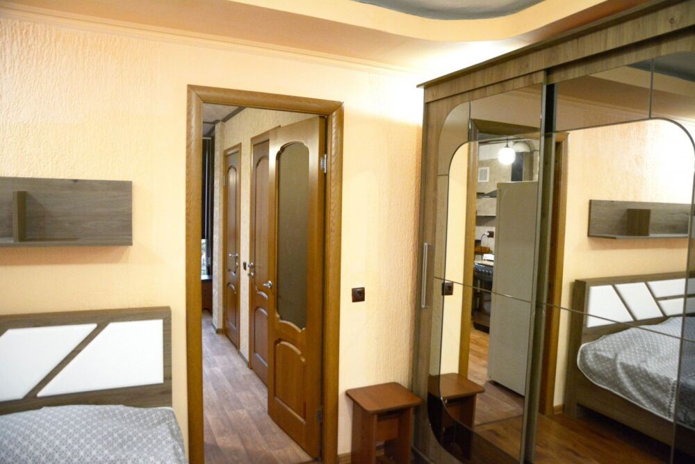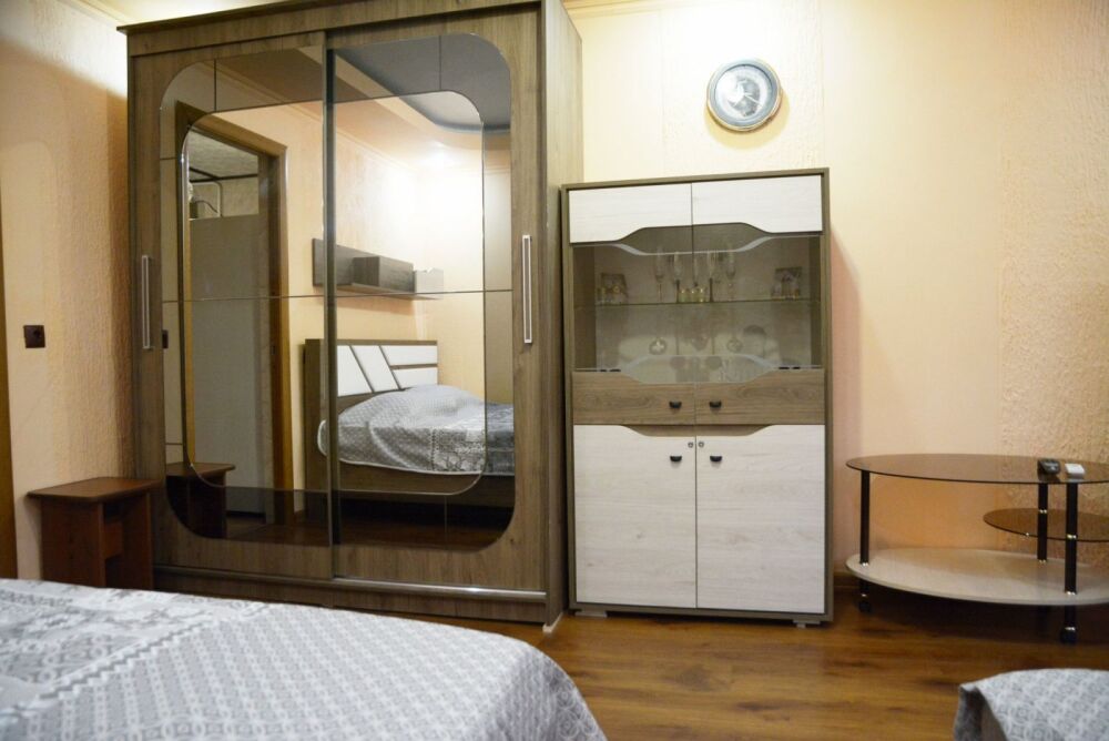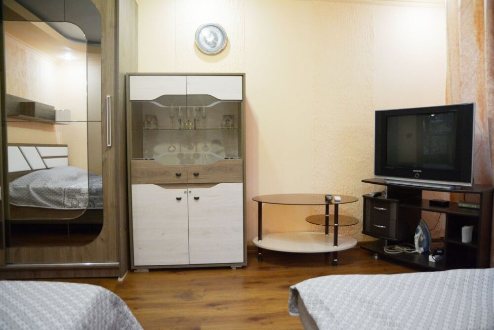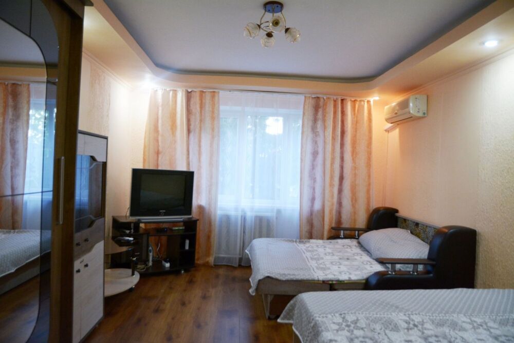 Жилье полностью подготовлено для комфортного размещения семьи или компании до 4 человек. Для вашего полноценного отдыха предусмотрены просторная двуспальная кровать и удобный раскладной диван. Интерьер оснащен всем необходимым современным оборудованием: от сплит-системы, создающей приятную прохладу, до безлимитного Wi-Fi и телевизора для вечернего досуга.