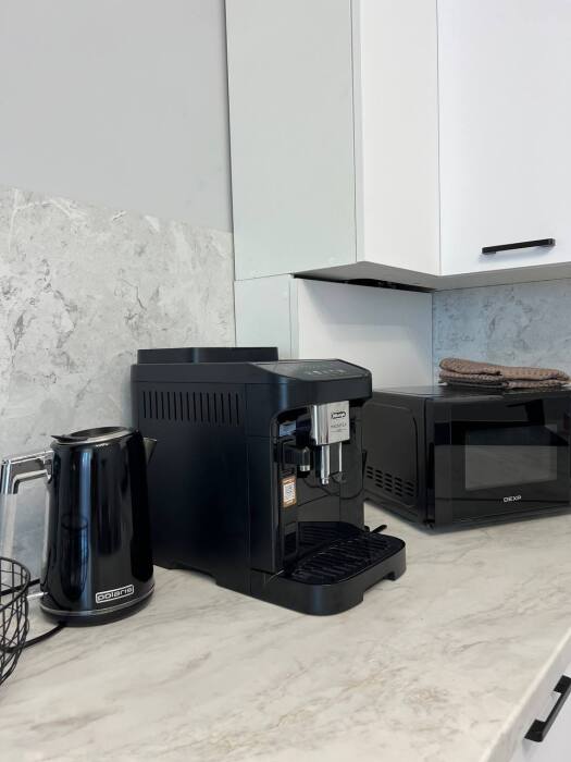 - Чтобы Ваше утро было самым добрым, мы позаботились о кофемашине и натуральном кофе.