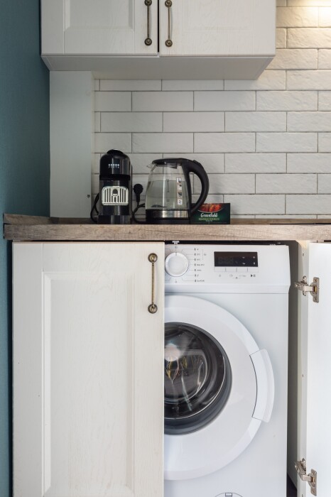 Кухня оснащена: варочной панелью, микроволновой печью, электрочайником, кофемашиной и холодильником. Чай, кофе всегда в наличии!