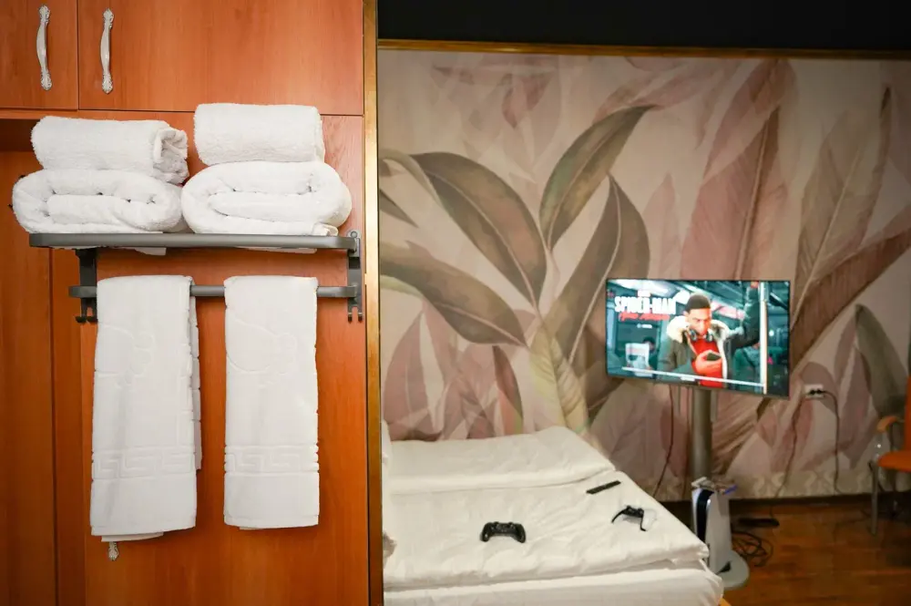 В Апарт-отелем Комиссаржевская есть бесплатный Wi-Fi и смарт ТВ. Есть бесплатная уличная парковка. В коридоре имеются два раздельных санузла в общем пользовании на 5 номеров. В одном из них установлена душевая кабина с турецкой баней хамам (бесплатно аромамасла на выбор). Работает лифт. Имеется стиральная и сушильная машины.