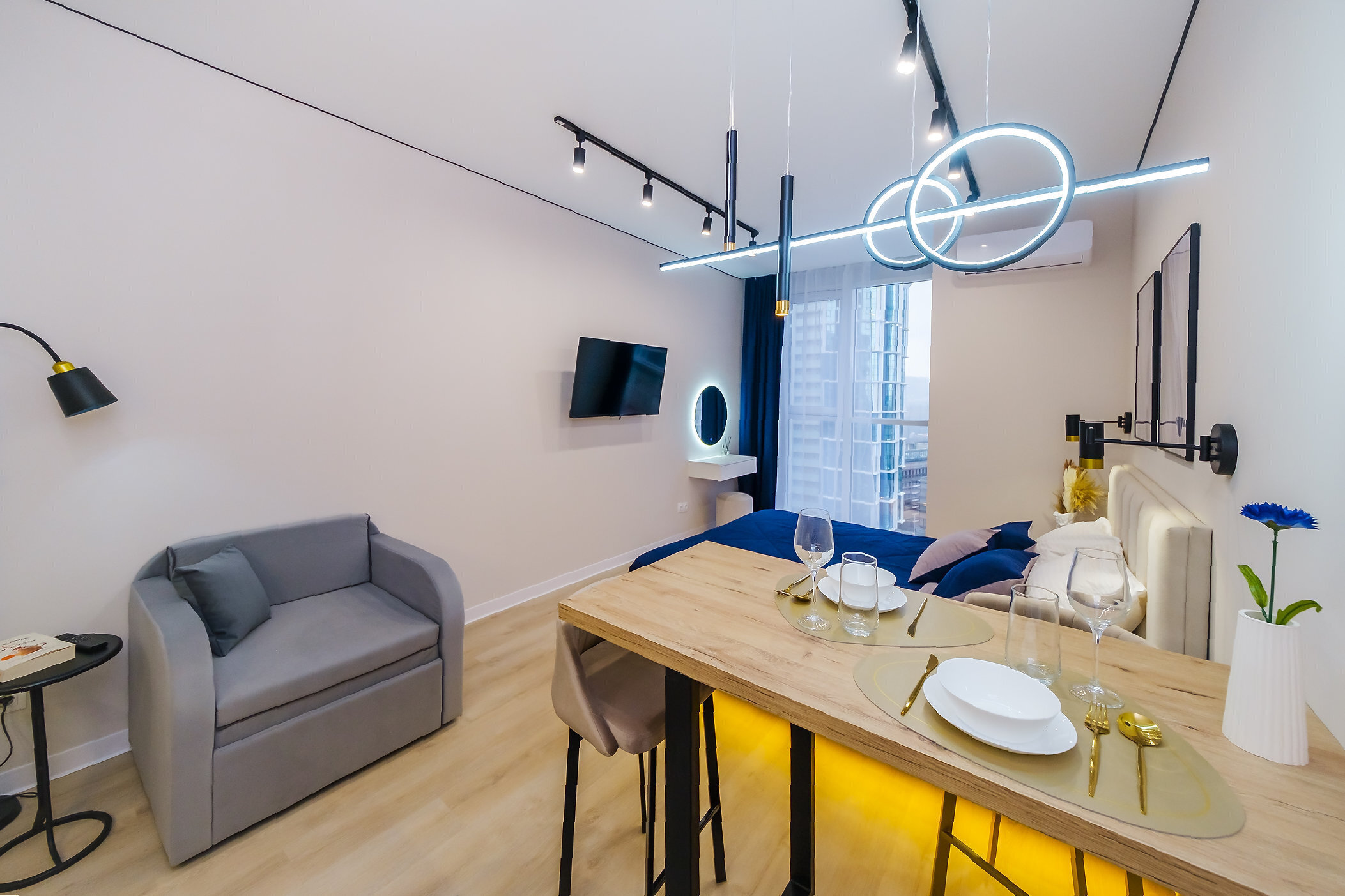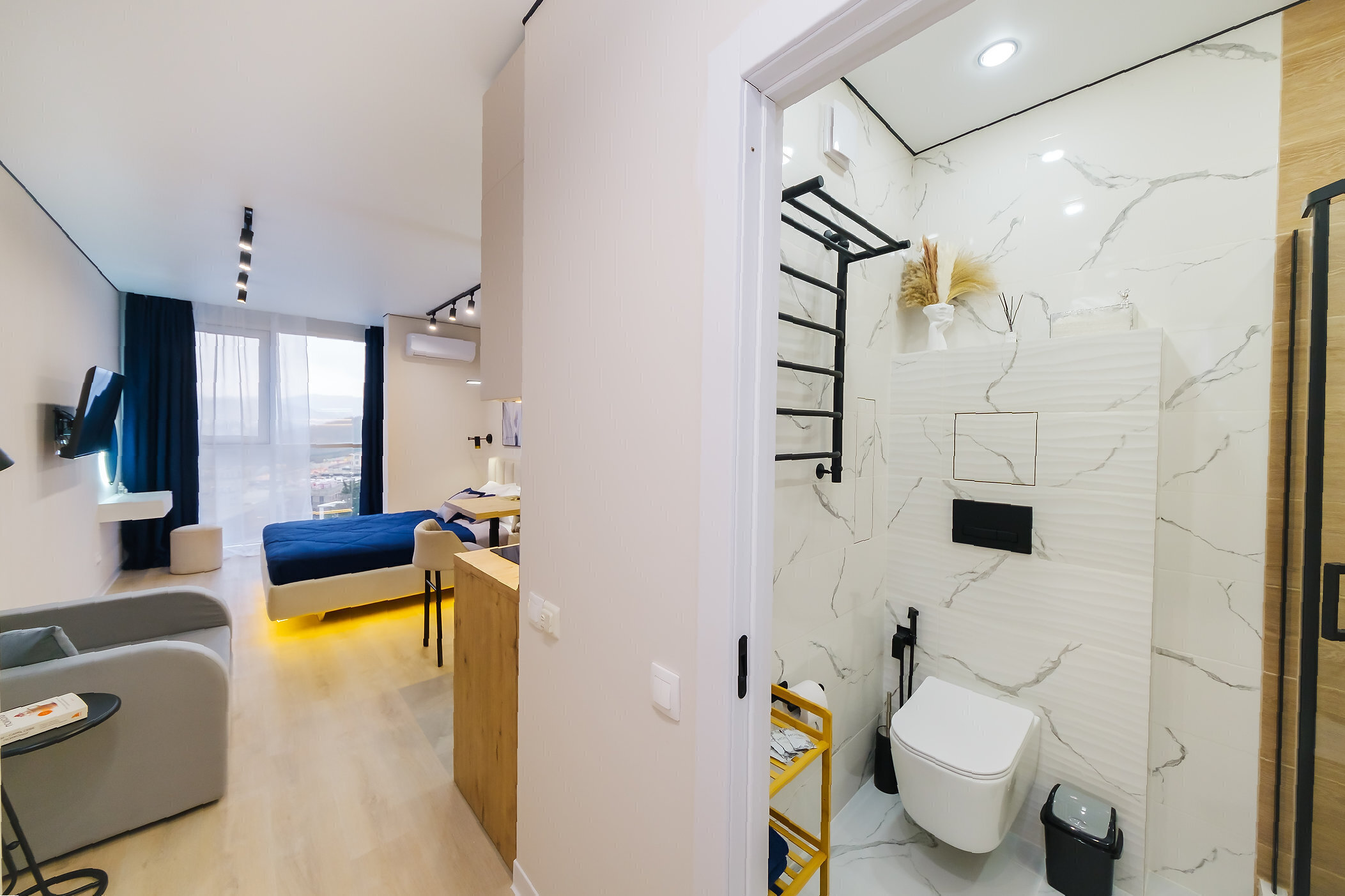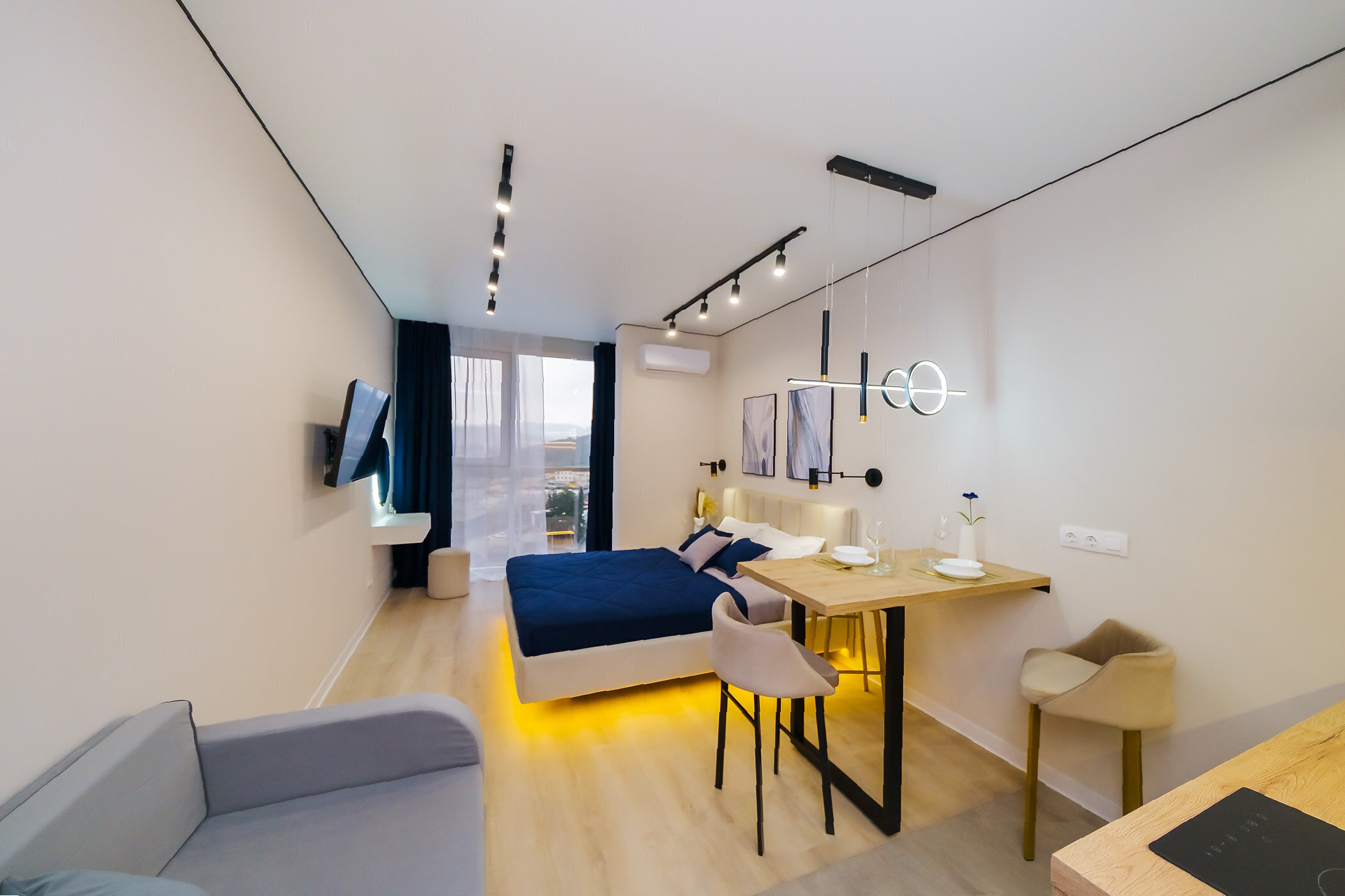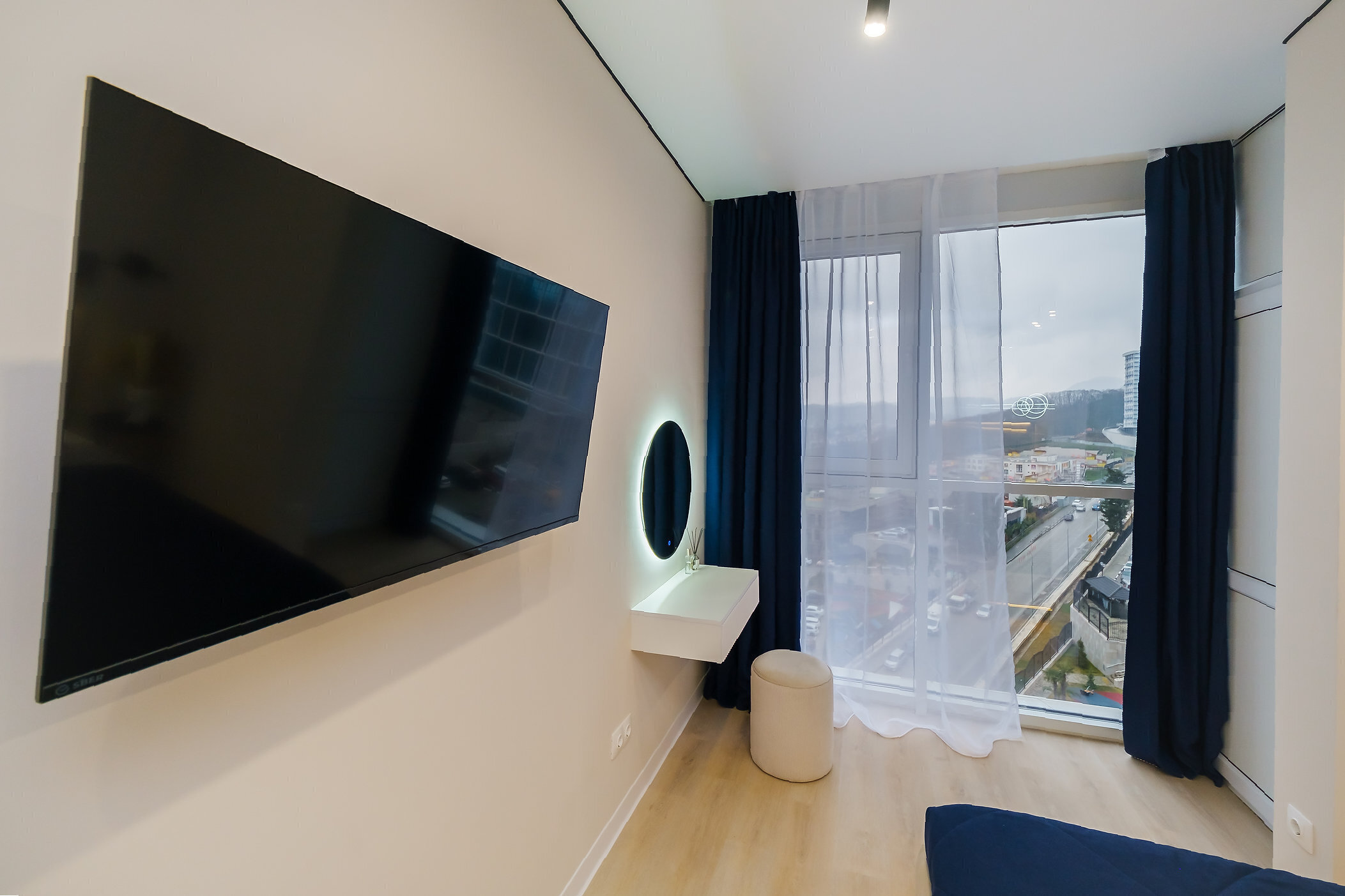 Вас ждет комфортабельная студия в современном ЖК «Сочи Парк». Наслаждайтесь панорамой горы Ахун и величественного Кавказского хребта прямо из Вашей квартиры.