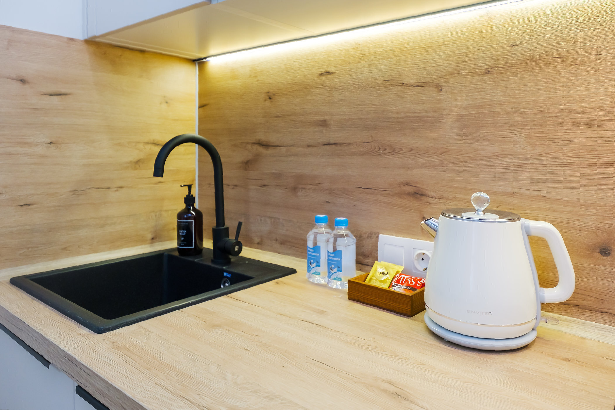- Стиральная машина, электрочайник, чай, кофе, питьевая вода.